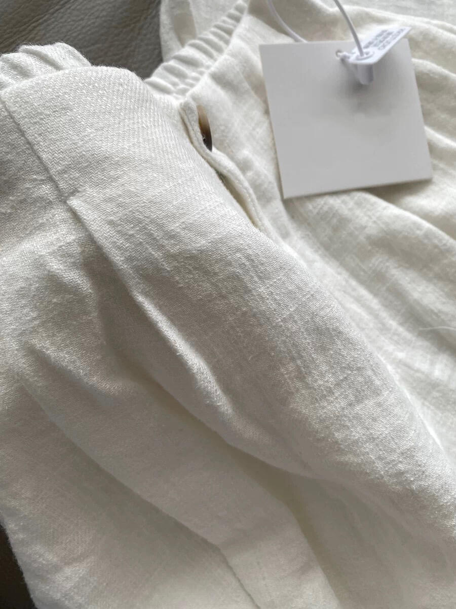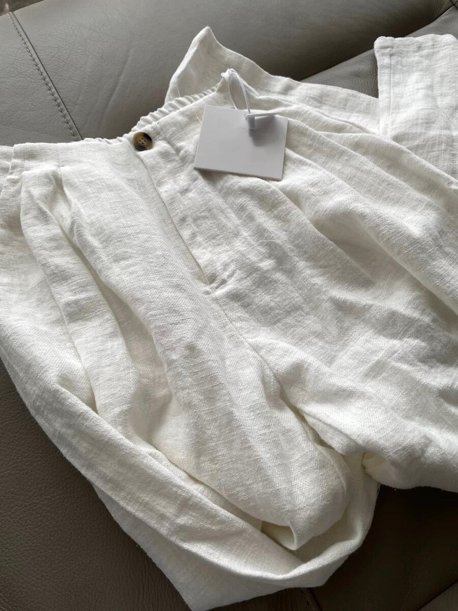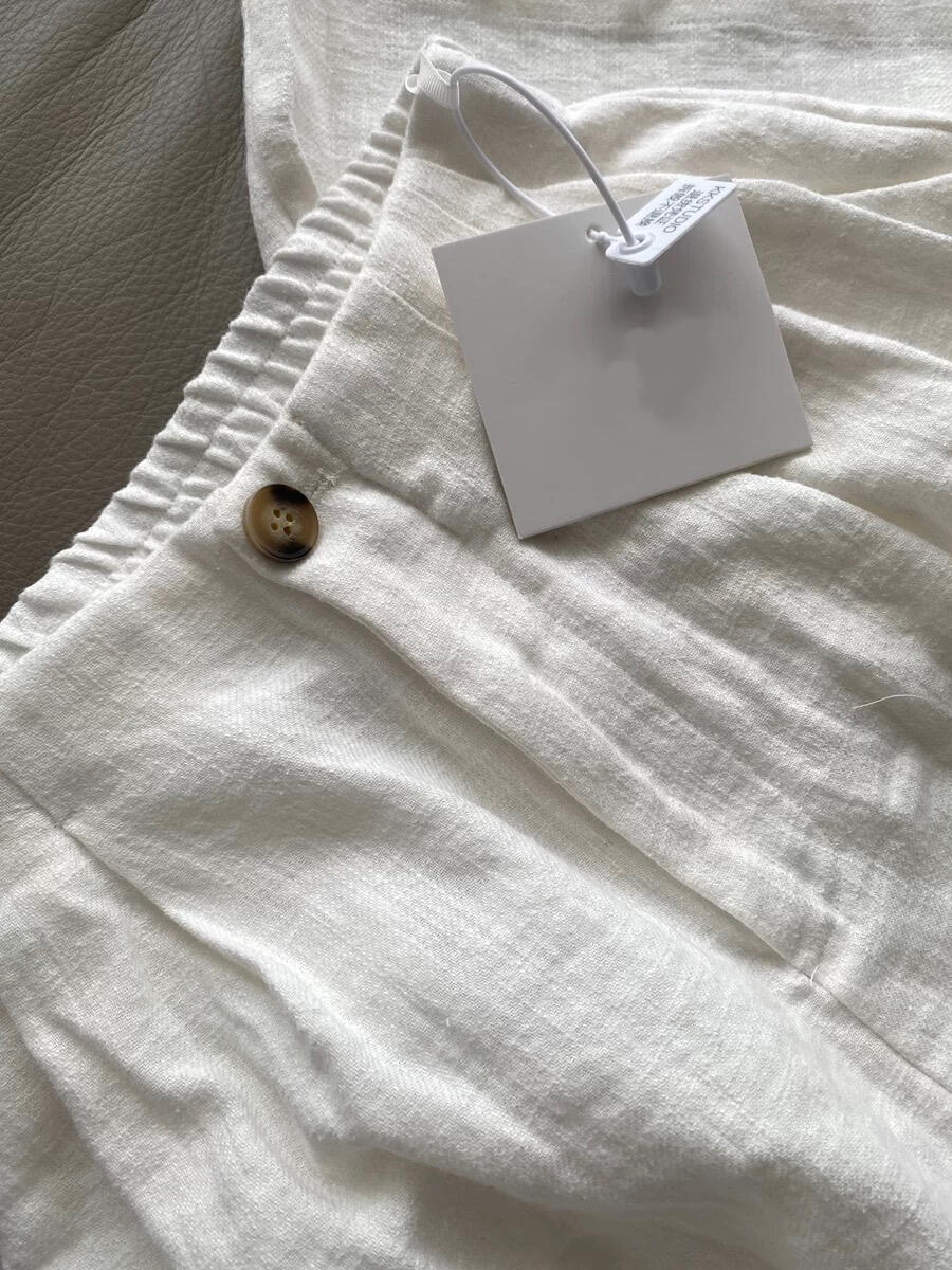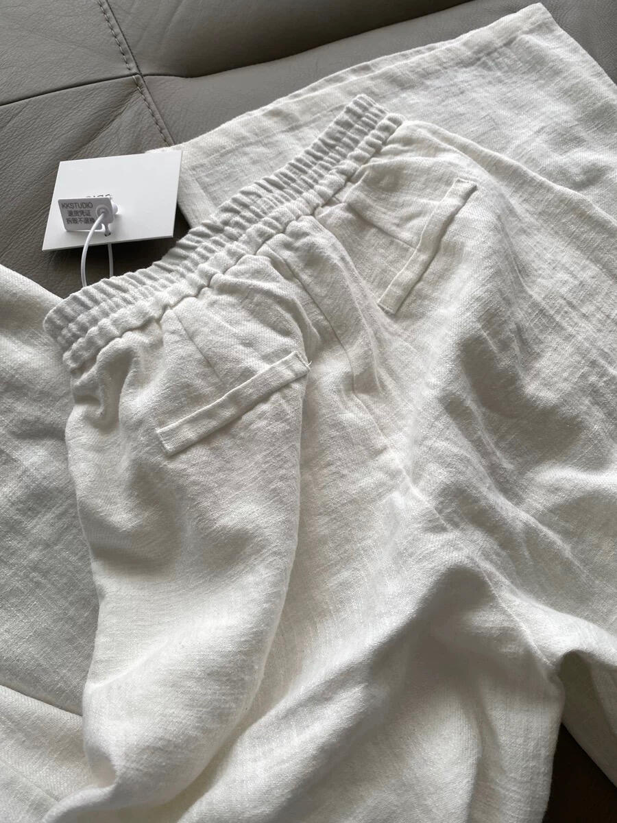 슬랙 선 스크린 화이트 리넨 게으른 드레이핑 높은 허리 넓은 다리 바지로 기질 미친 보너스스토어 가기
