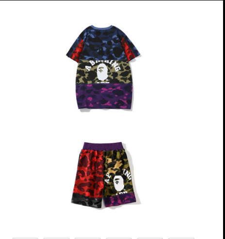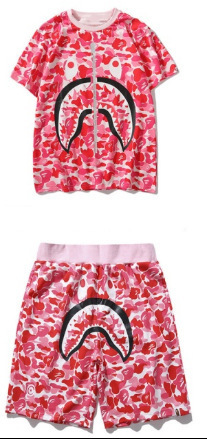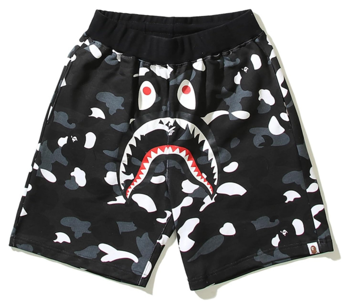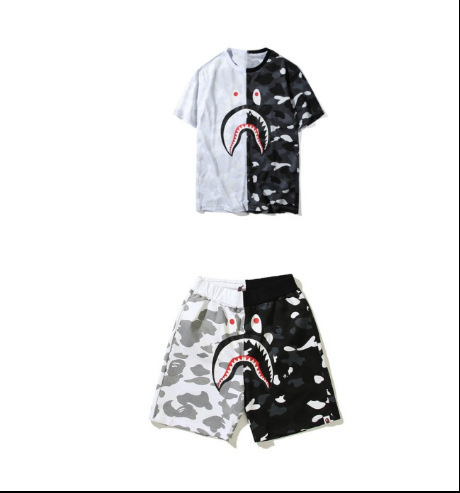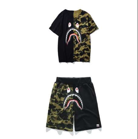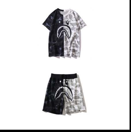 상어 머리 프린트 세트 청소년 티셔츠 스포츠 상어 베이프 일본 패션 반팔 온웨어 카모플라주스토어 가기