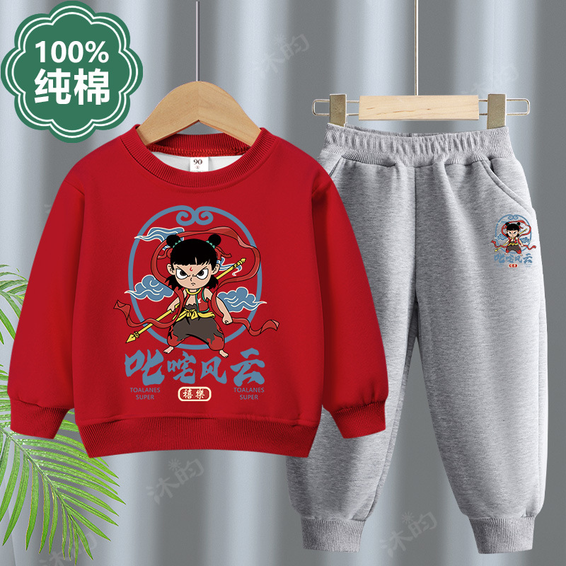 男童春装套装2025新款潮男孩运动春季卫衣儿童哪吒衣服스토어 가기
