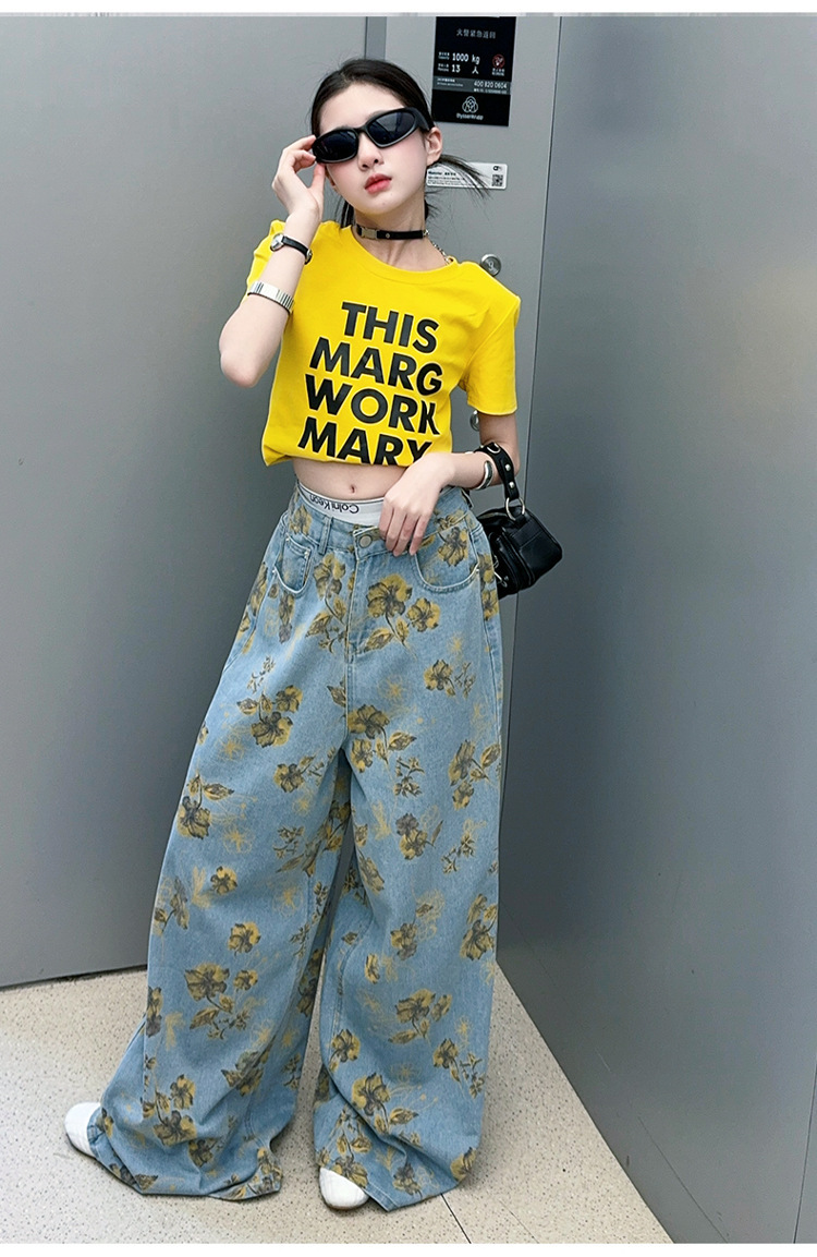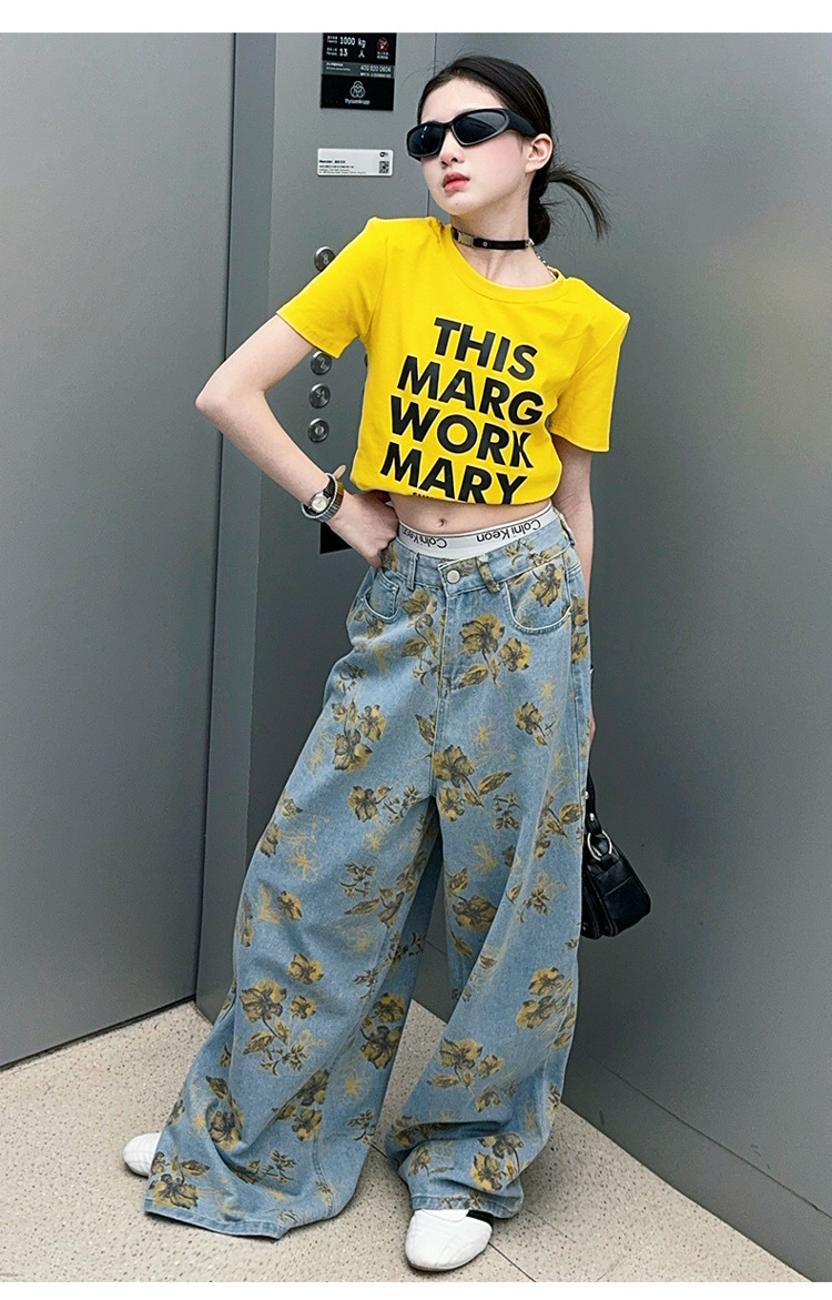 소녀 여름 캐주얼 와이드 다리 바지 2025 새로운 어린이 바지 큰 소년과 소녀 여름 느슨한 스트레이트 바지스토어 가기
