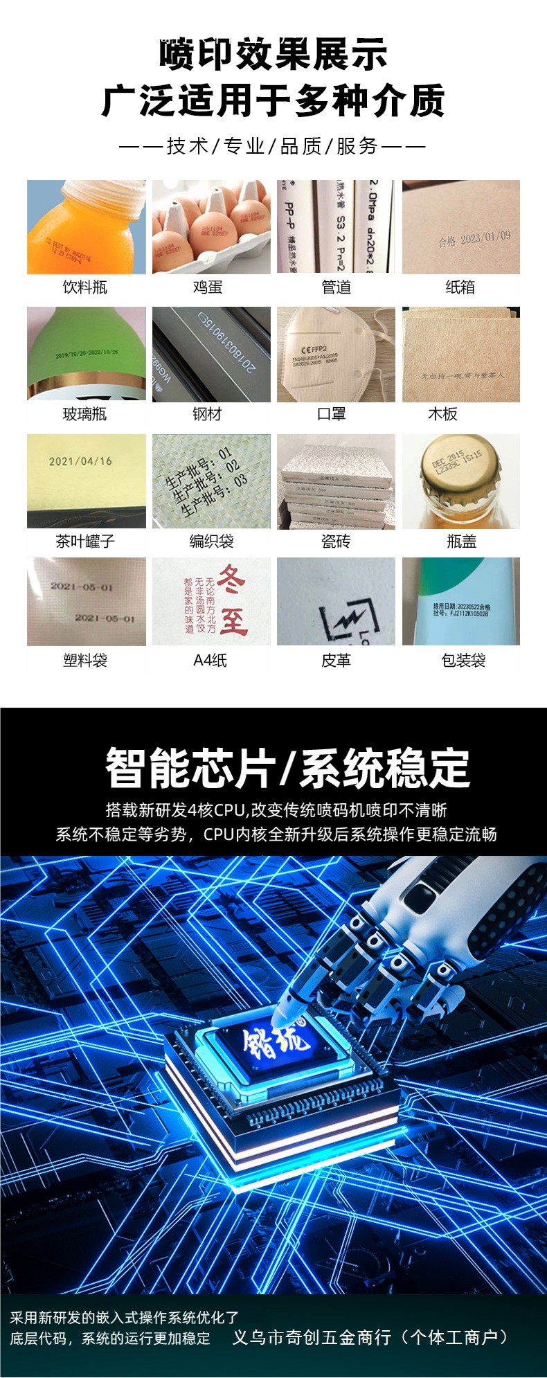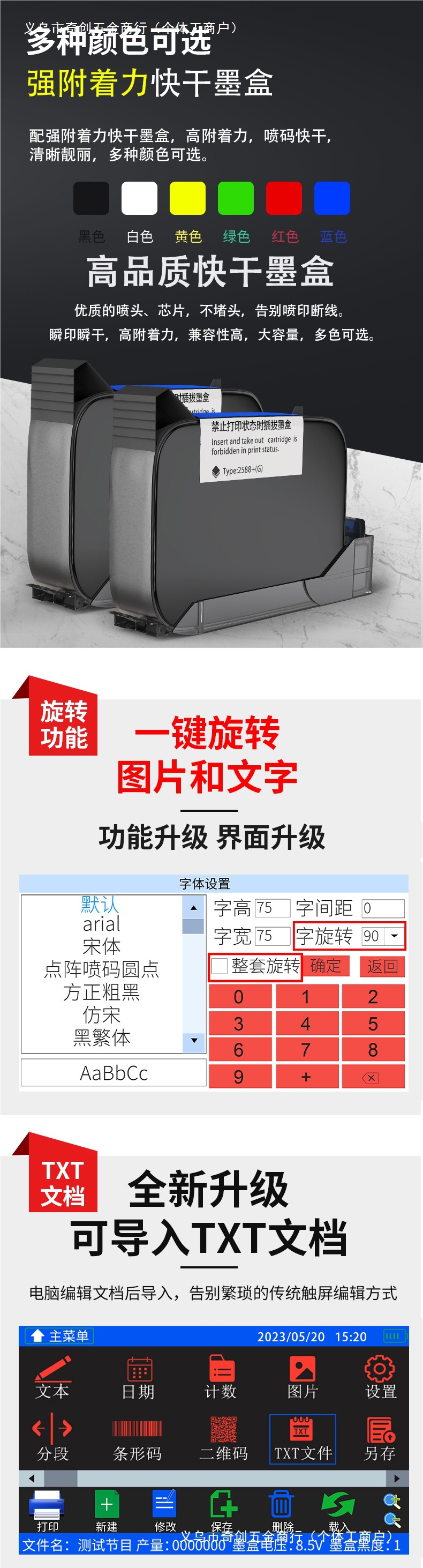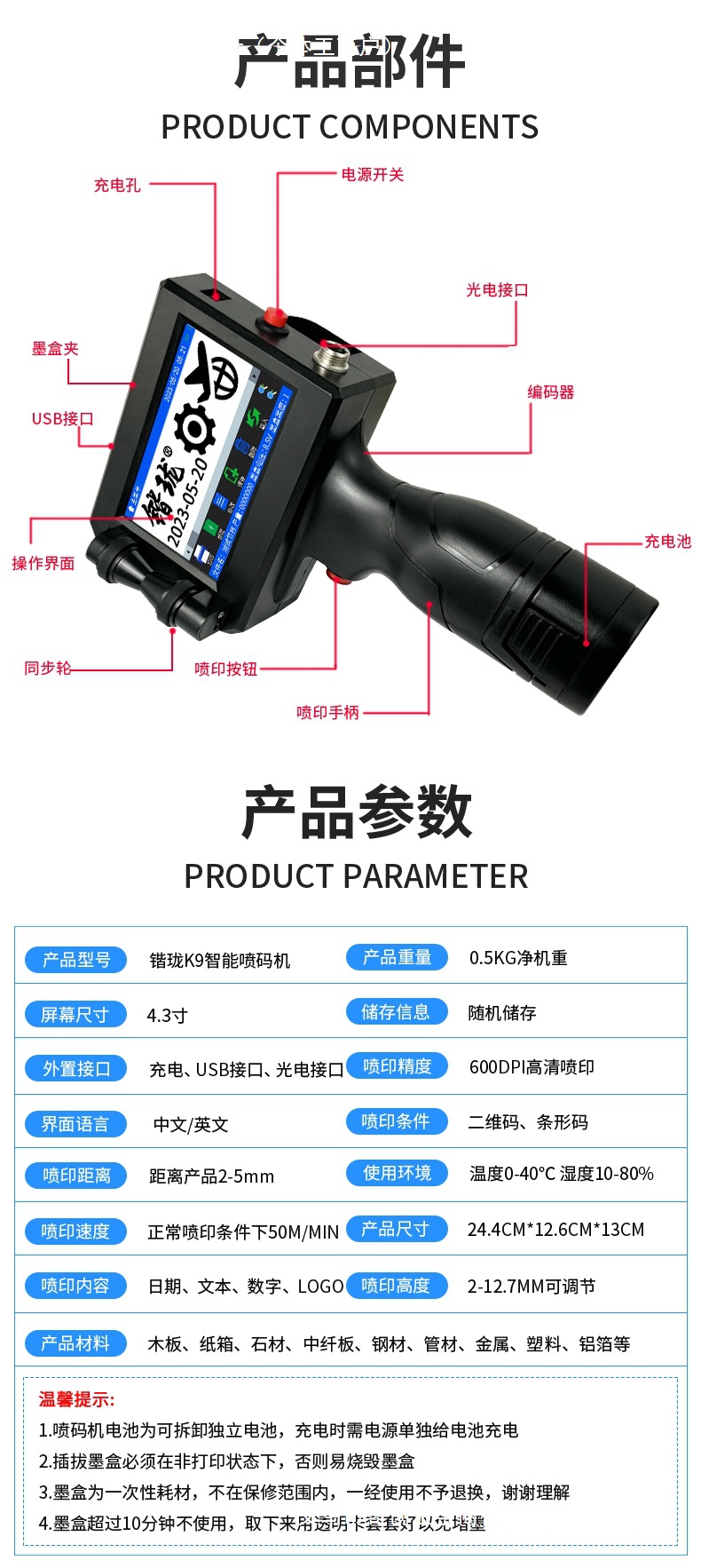 • K9 잉크젯 프린터 + 검정색 강력한 접착력과 속건성(수입 속건성/매끄러운 표면 재질 제한 없음)