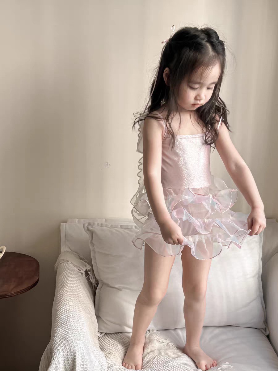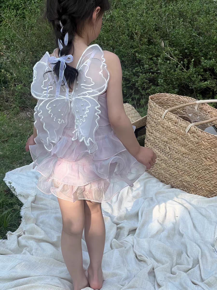 여아 수영복 여름 어린이 수영복 날개 케이크 스커트 여아 원피스 수영복 비키니 여아 수영복