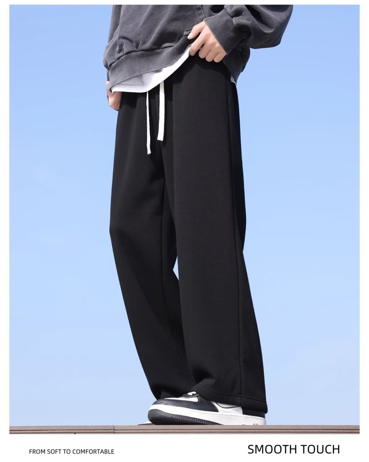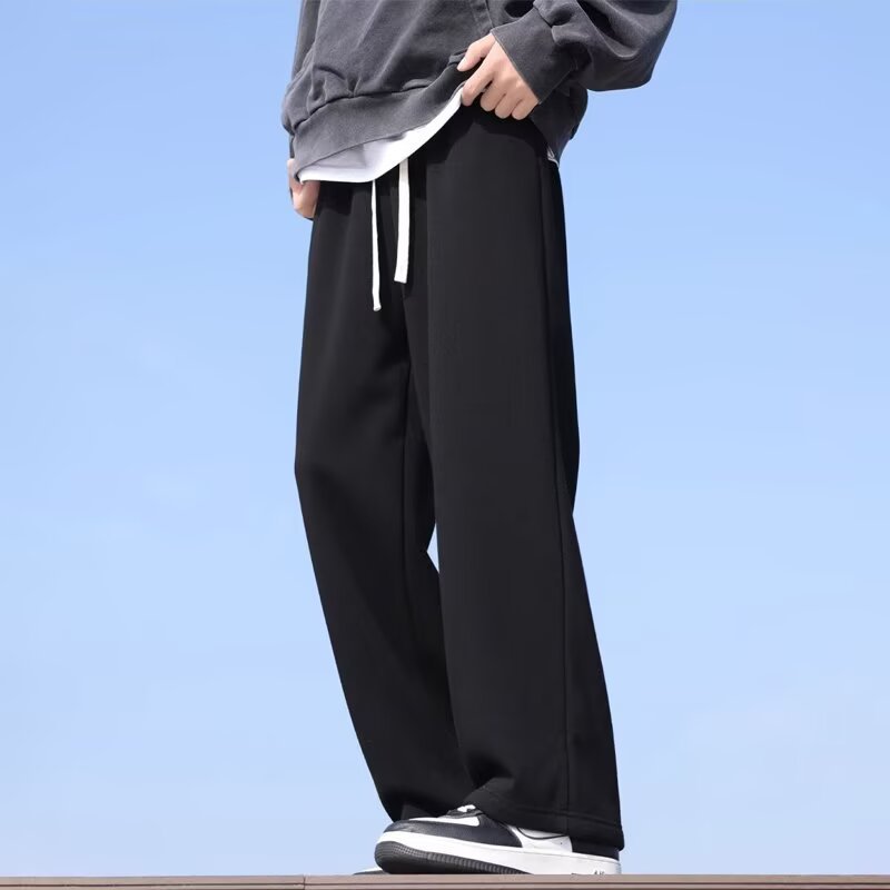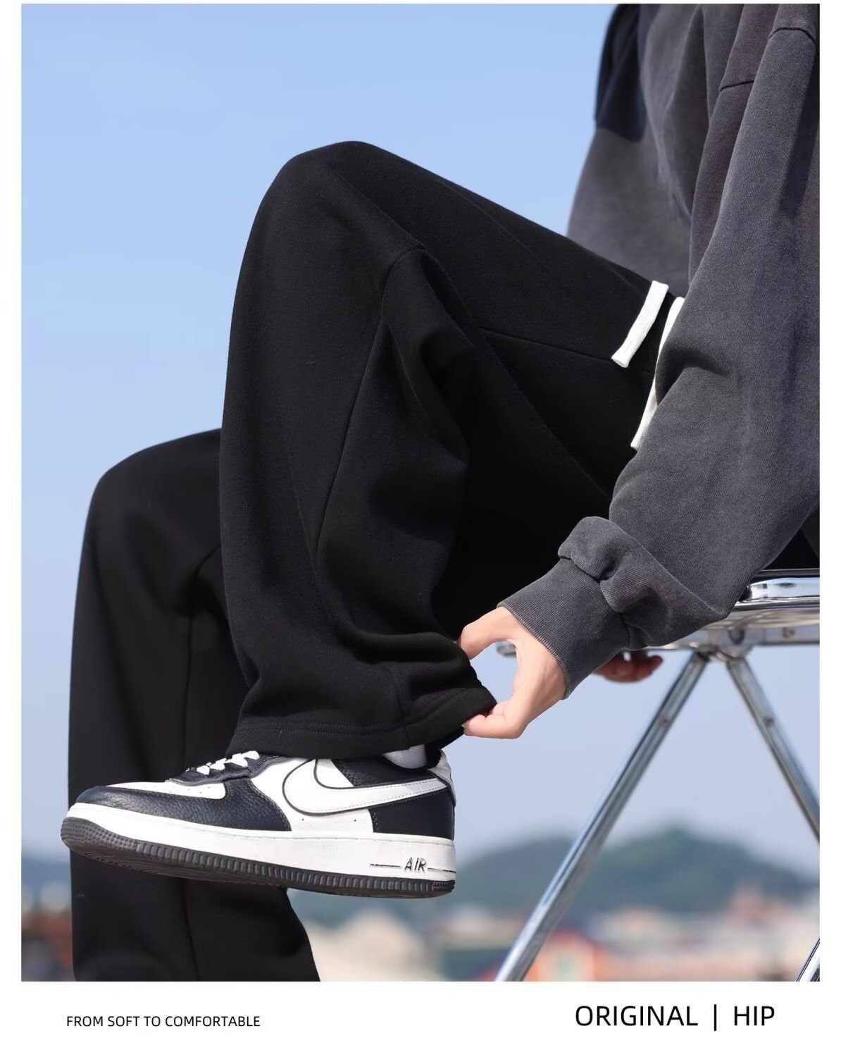 남성용 봄, 가을 바지 플러스 사이즈 루즈 블랙 캐주얼 바지 트렌디하고 다재다능한 스포츠 스트레이트 얇은 스웨트 팬츠