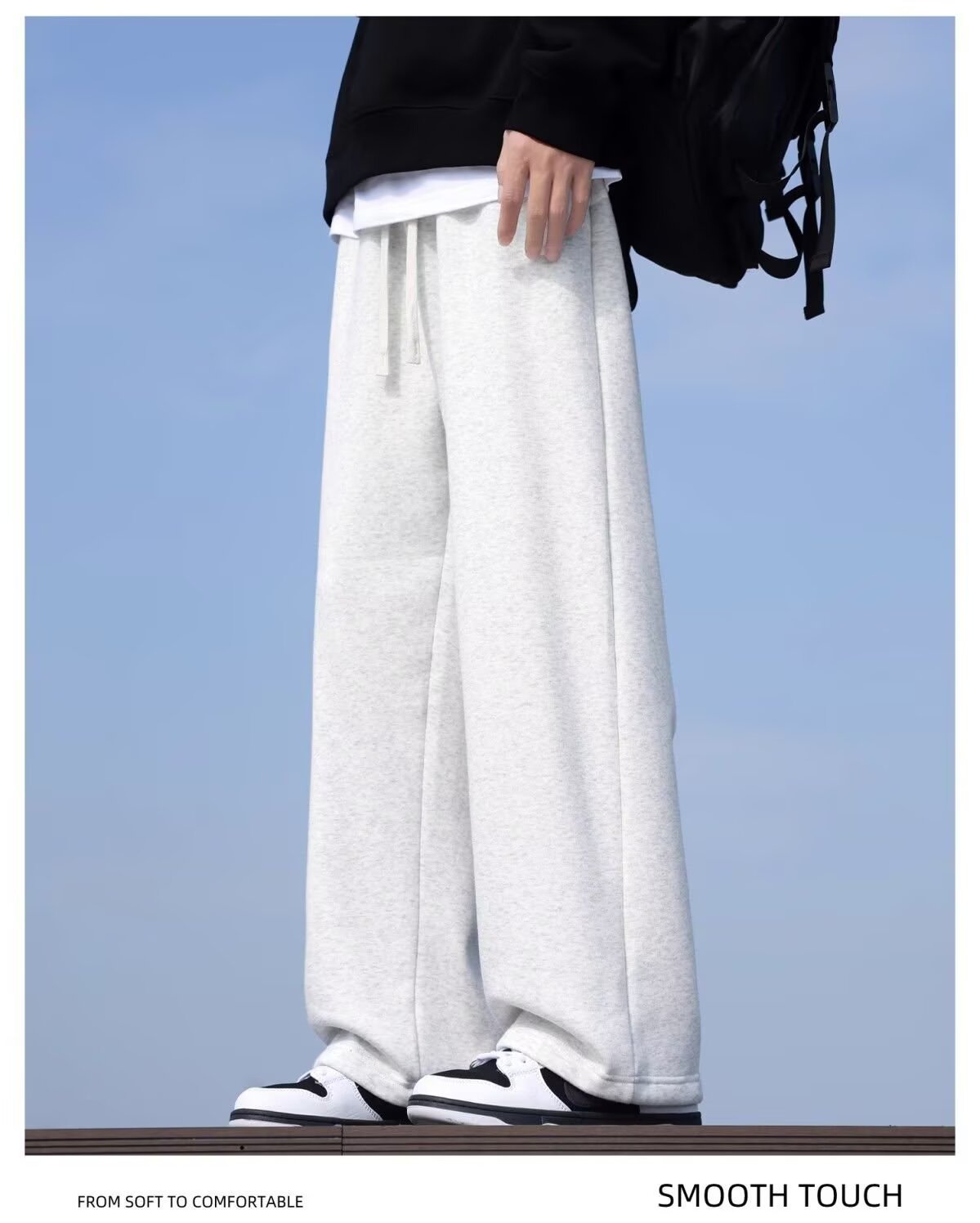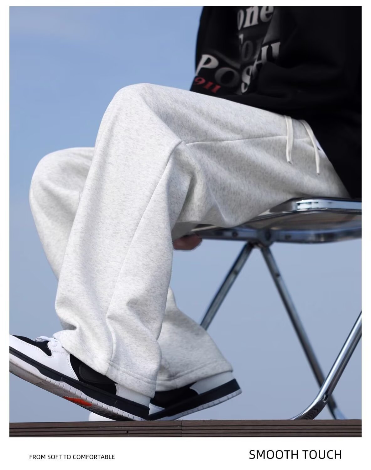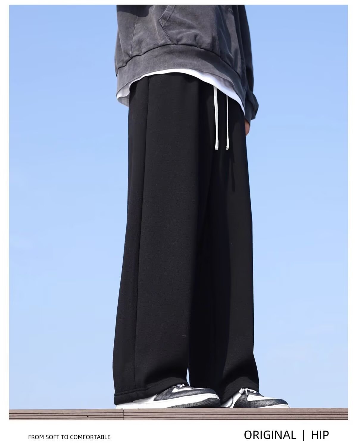 남성용 봄, 가을 바지 플러스 사이즈 루즈 블랙 캐주얼 바지 트렌디하고 다재다능한 스포츠 스트레이트 얇은 스웨트 팬츠