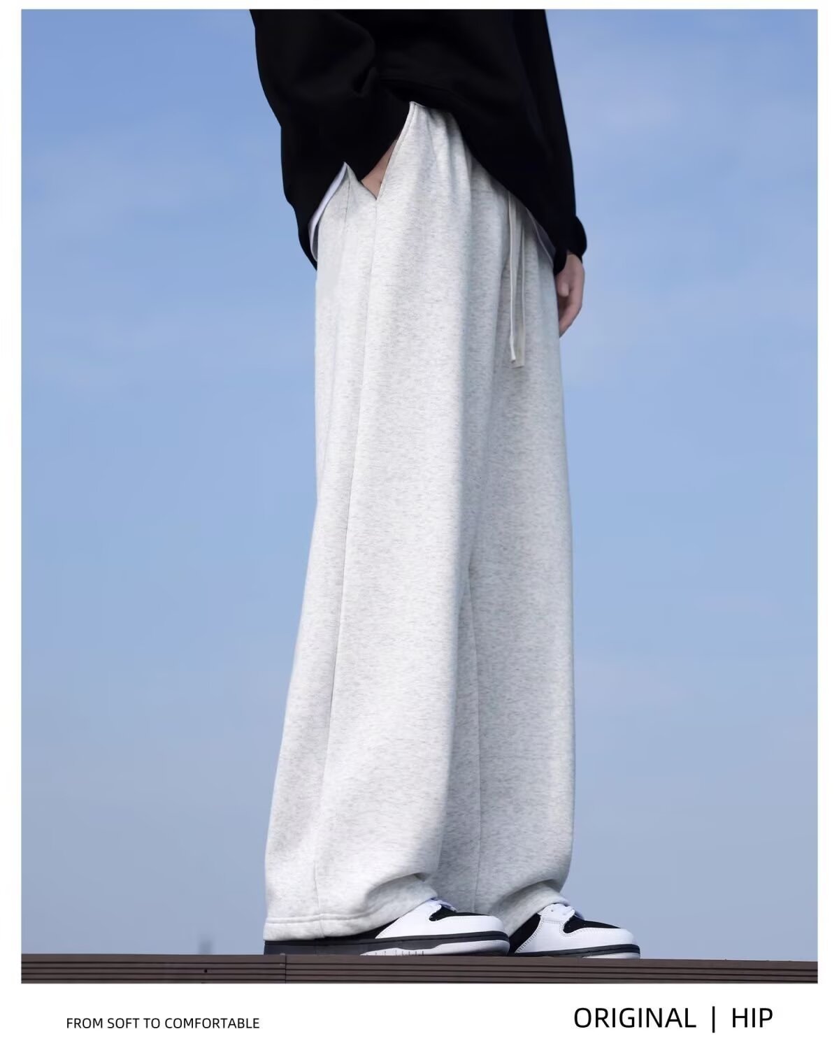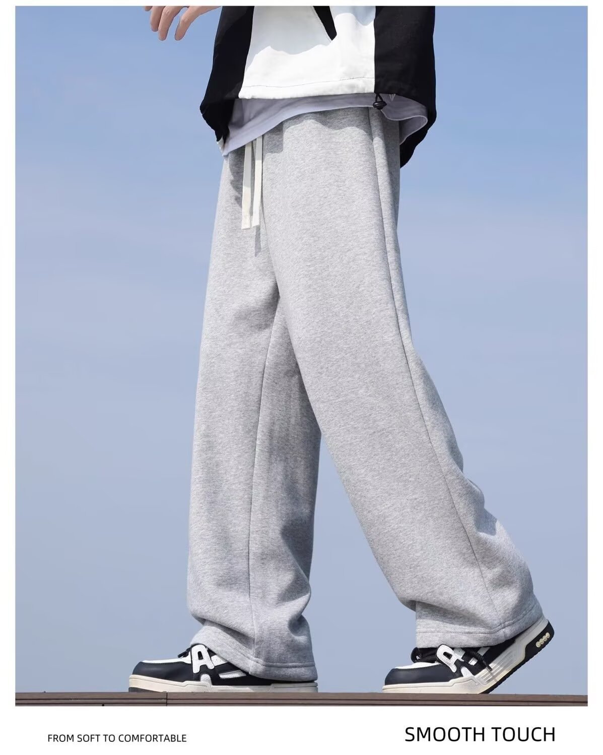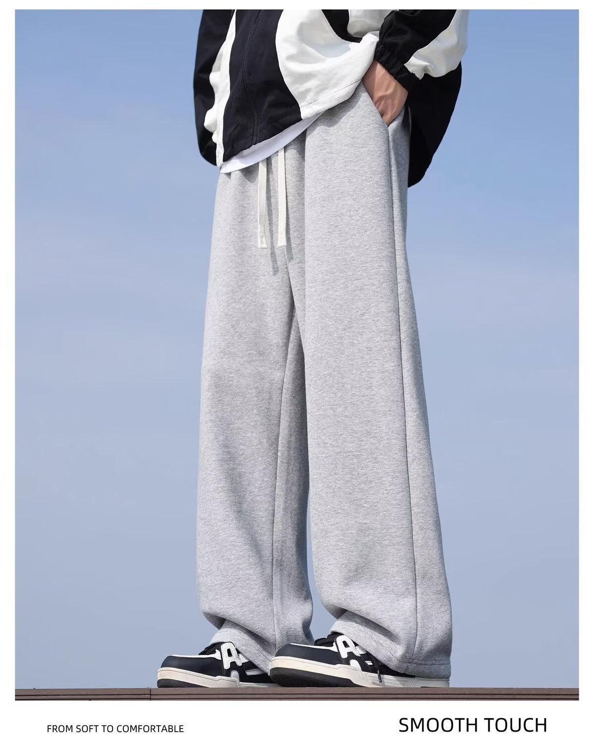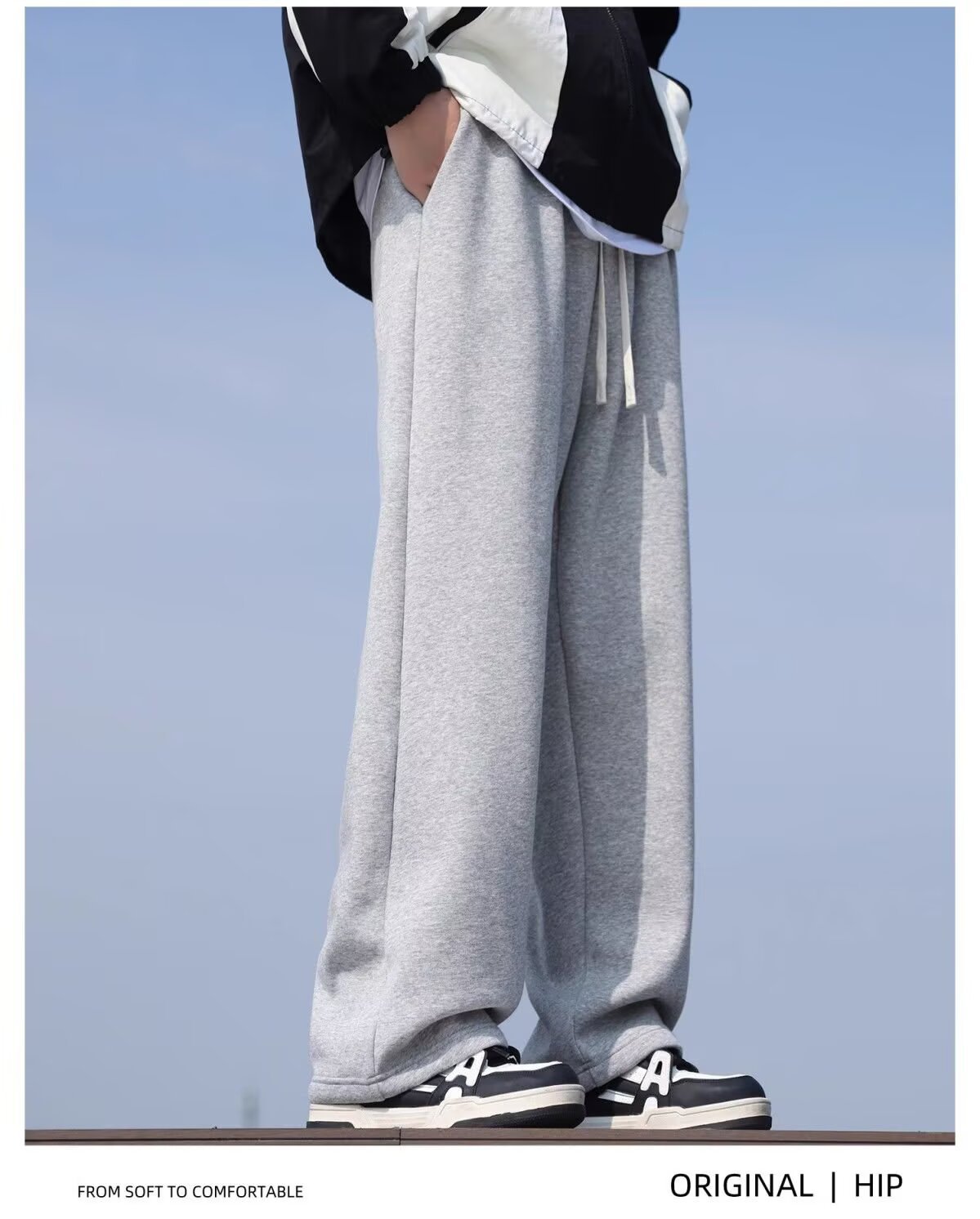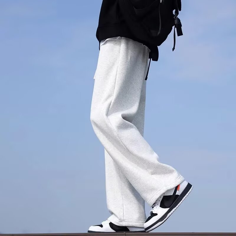 남성용 봄, 가을 바지 플러스 사이즈 루즈 블랙 캐주얼 바지 트렌디하고 다재다능한 스포츠 스트레이트 얇은 스웨트 팬츠스토어 가기