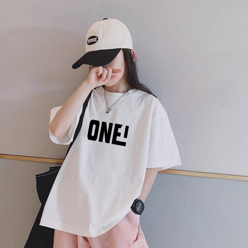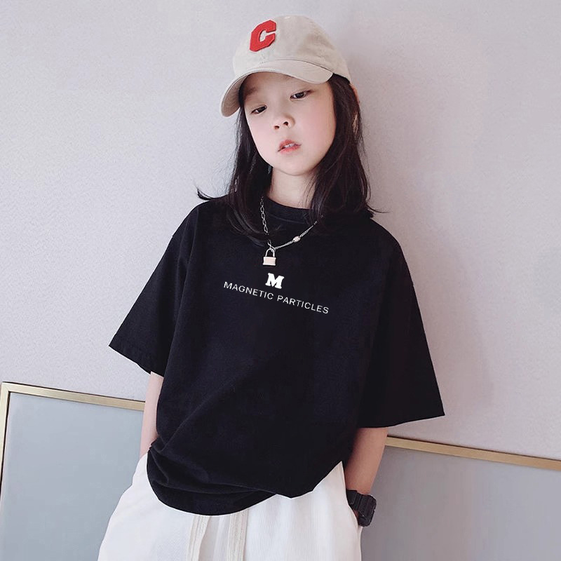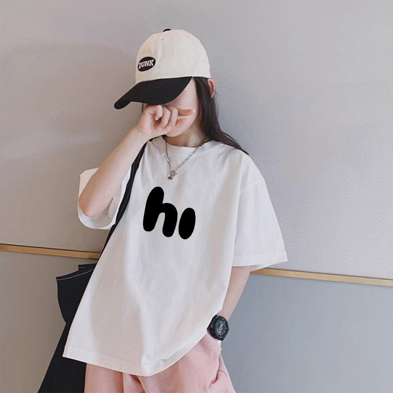 여자 패션 순수 코튼 반팔 티셔츠 여름 중대형 어린이 6-15 글자 탑 여자 학생 여름 티셔츠