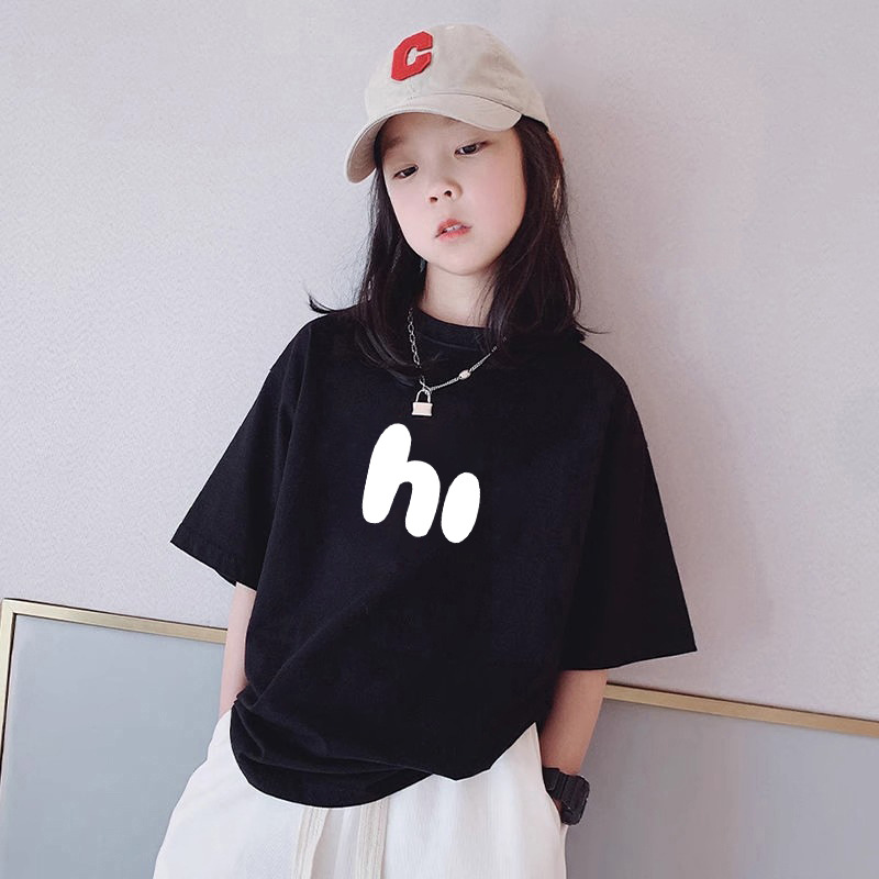 여자 패션 순수 코튼 반팔 티셔츠 여름 중대형 어린이 6-15 글자 탑 여자 학생 여름 티셔츠스토어 가기