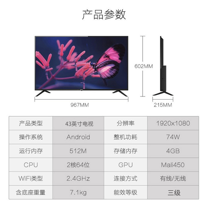 하이얼(Haier) 43inch 가정용 상업용 LED 스마트 평면 TV 2차 에너지 효율 H43E07