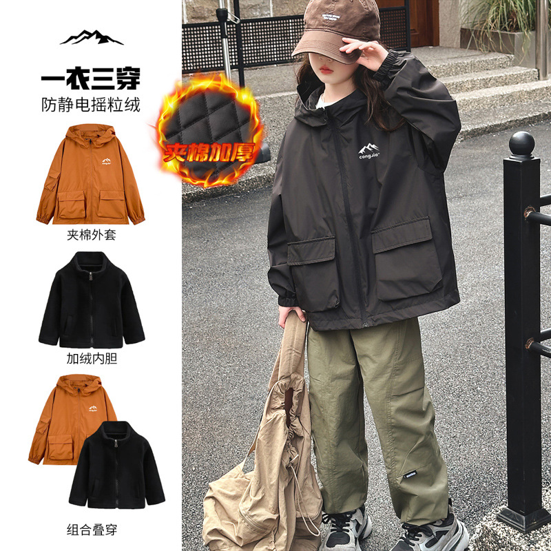 여자 봄 재킷 2025 새로운 어린이 3-in-one 분리형 재킷 야외 방풍 봄, 가을상의스토어 가기