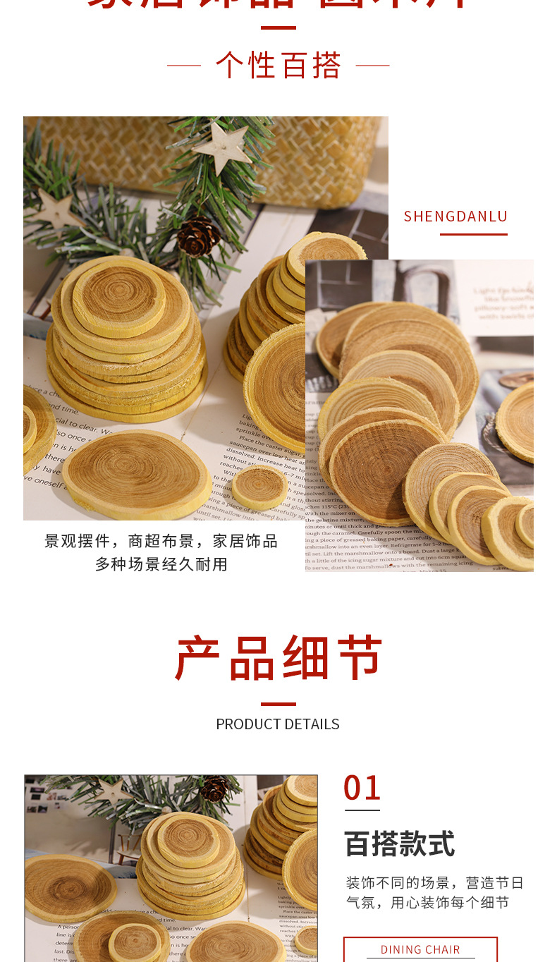 Sophora 원형 목재 조각 공예 원료 연속 나무 Sophora 목재 홈 diy 장식 재료 사진 소품 도매스토어 가기