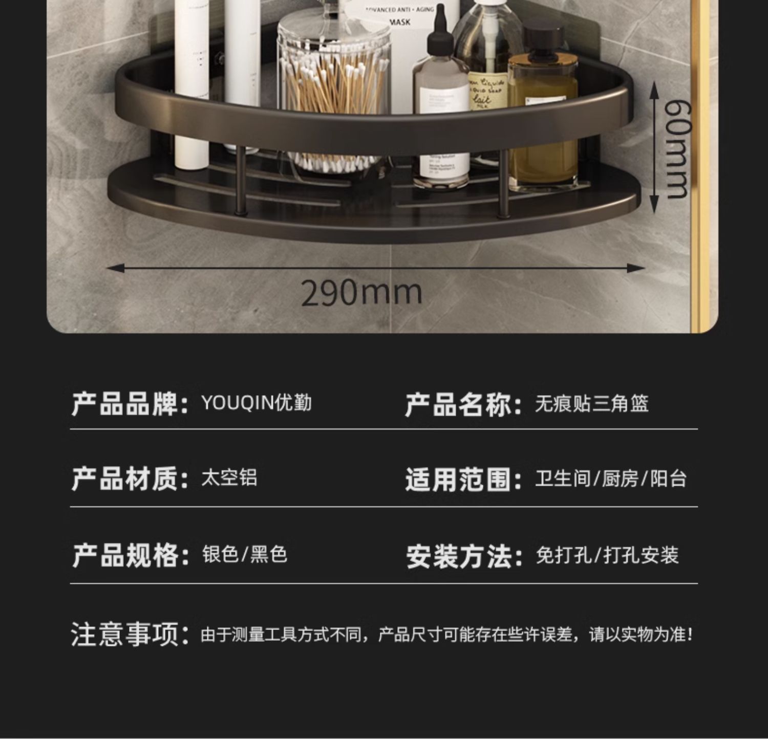 화장실 욕실 삼각형 랙 벽걸이 화장실 화장실 세면대 벽 보관 선반