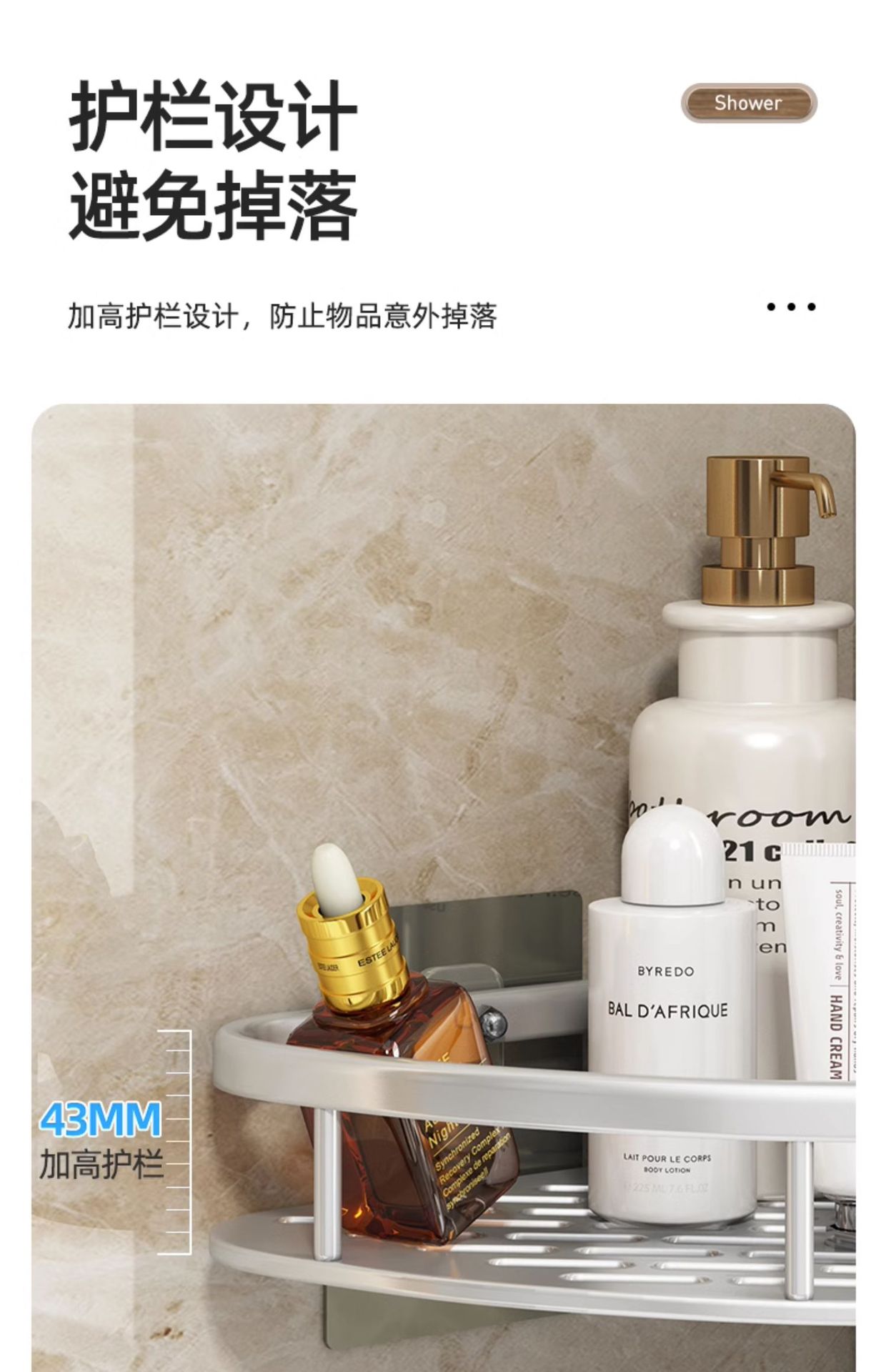 • [흡착컵 모델] 후크가 없는 더블 레이어 - 실버 - 높은 가드레일
