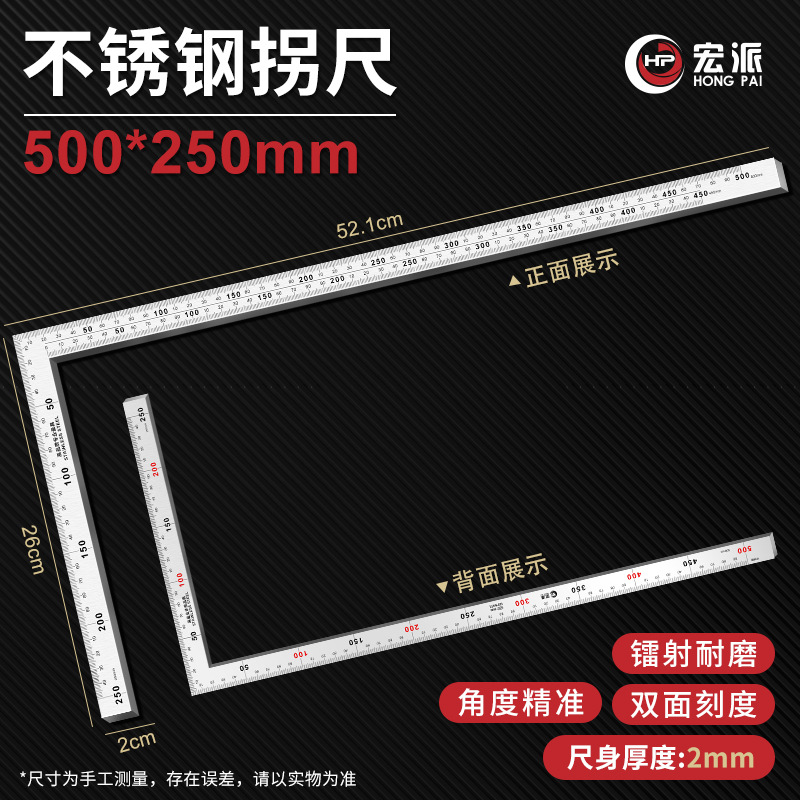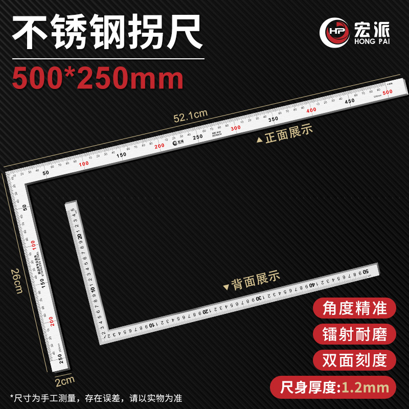 홍파이 스테인리스 각도자 양면 각도자 90도 두꺼운 직각 목공용 다기능 L자형 각도자