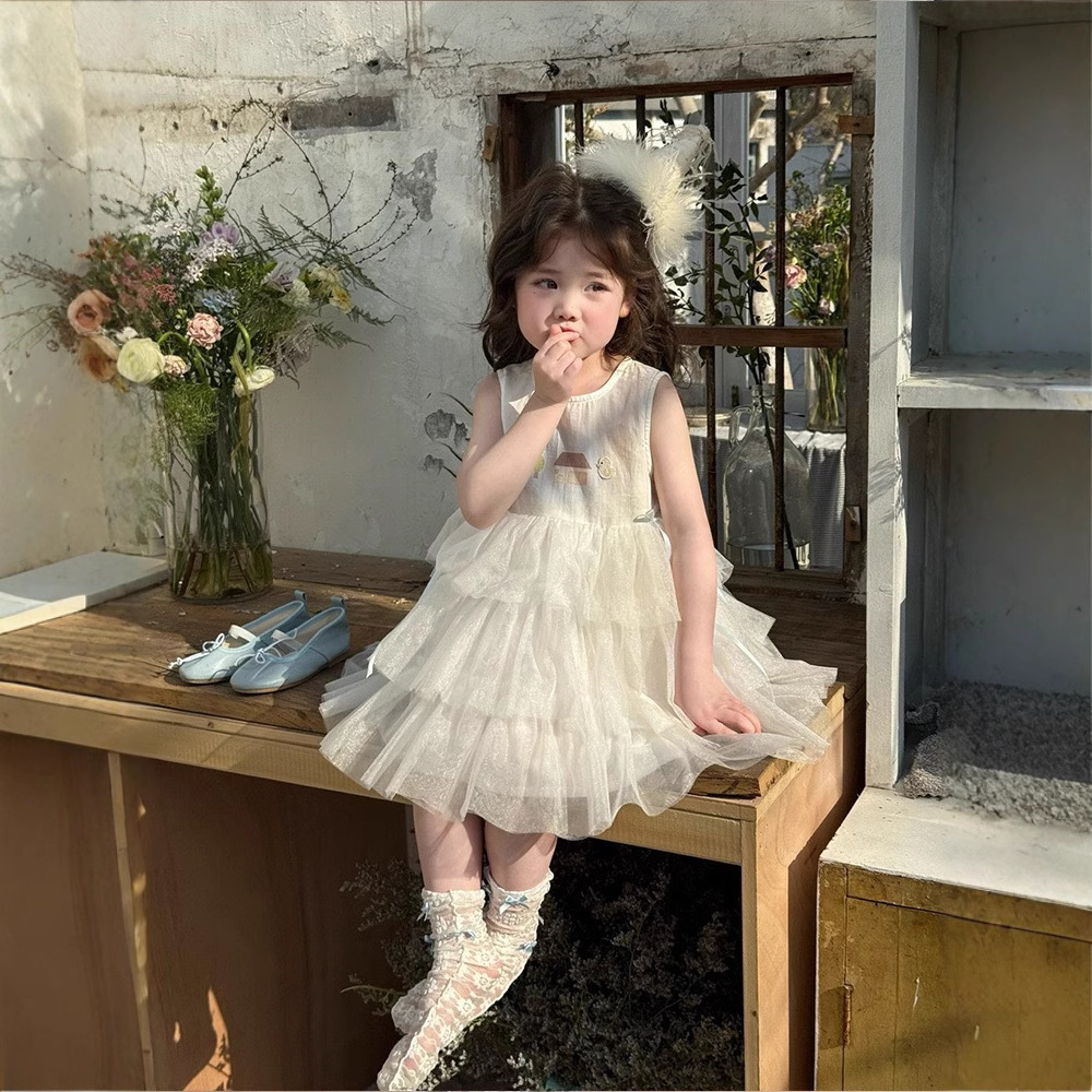 한국 어린이 의류 25 여름 새 소녀 한국 만화 민소매 메쉬 스티칭 원피스 공주 원사 스커트스토어 가기