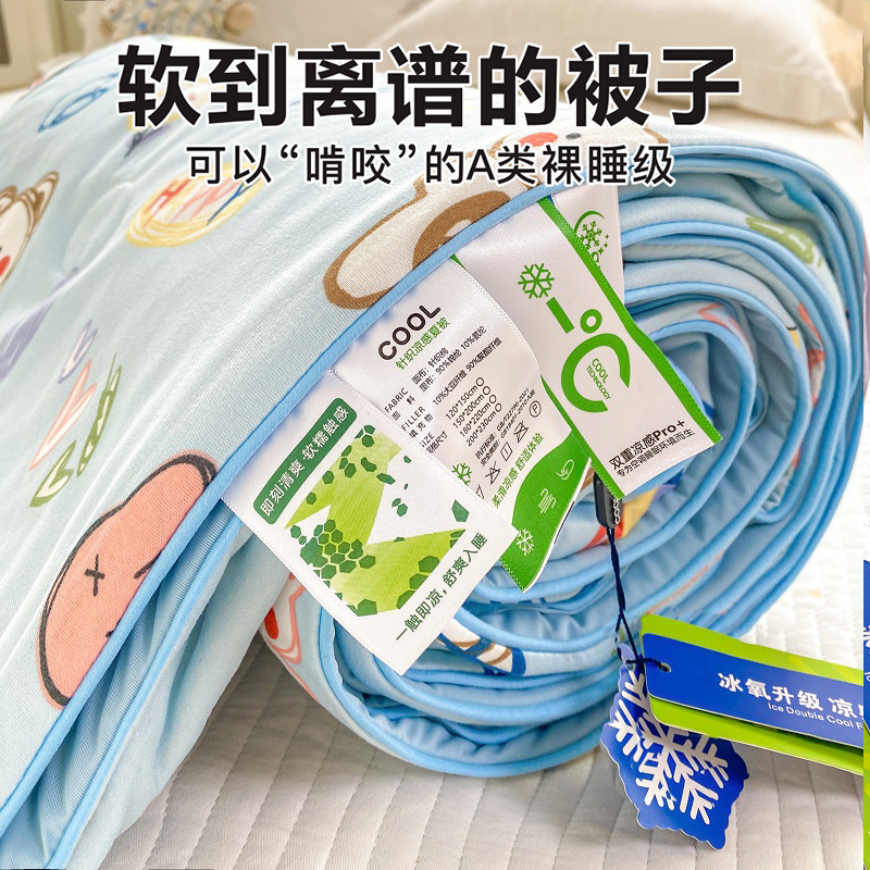 이불 봄여름 얇은 모델 여름 니트 시원한 실크 여름 이불 세탁기 사용 가능 아이스 실크 어린이 만화 에어컨 얇은 이불스토어 가기
