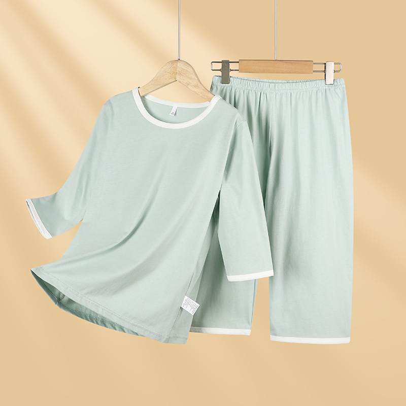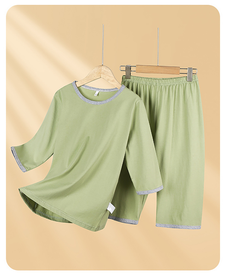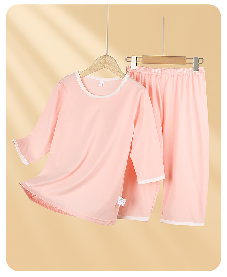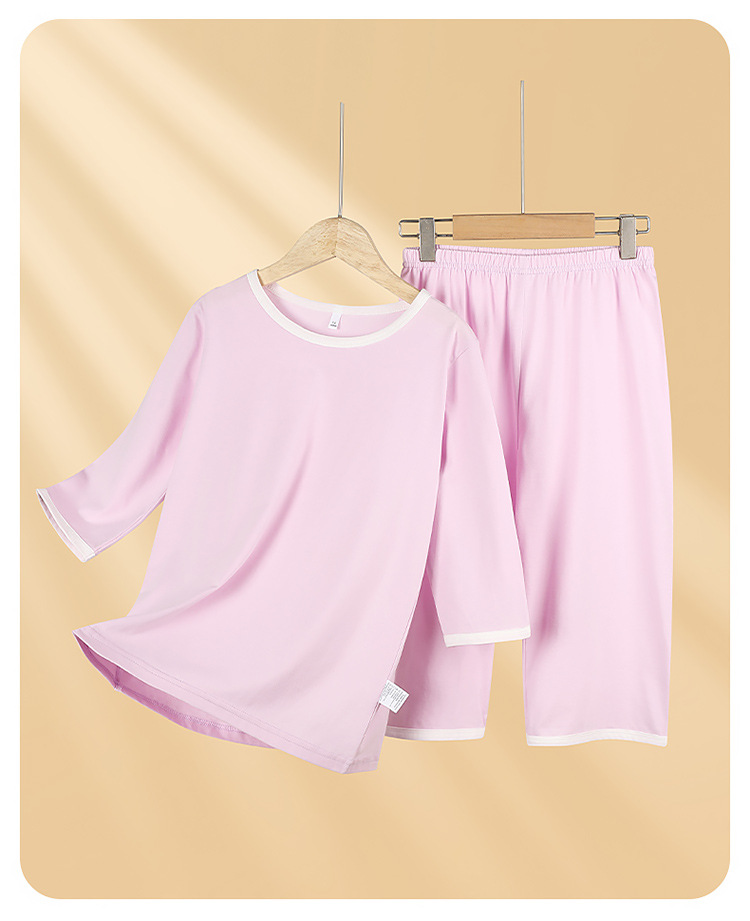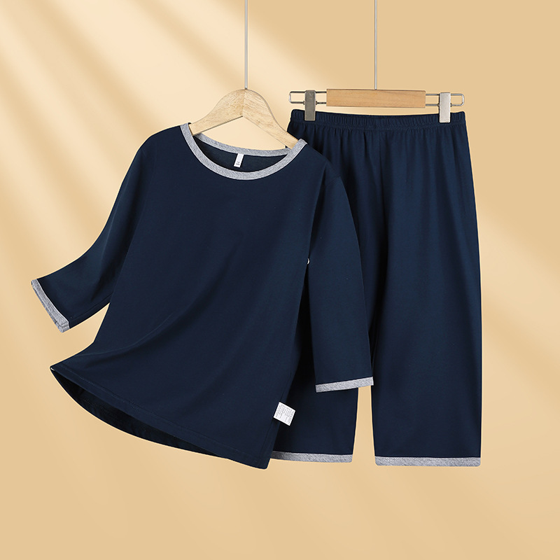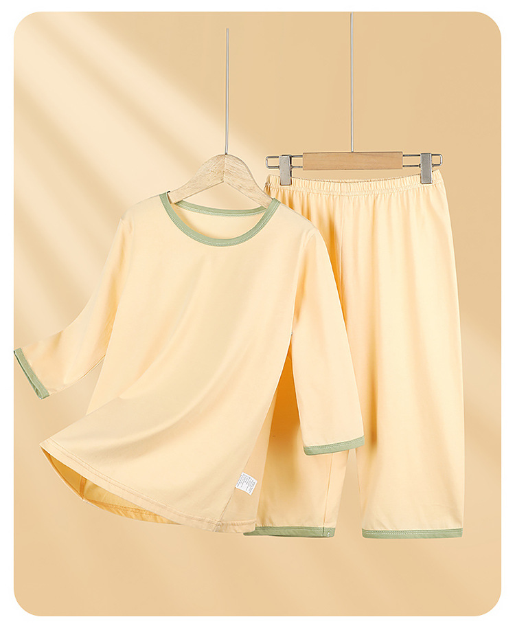 어린이 순면 파자마 여름 소년 소녀를위한 얇은 반팔 풀오버 솔리드 컬러 코튼 홈 의류 세트 외부 착용