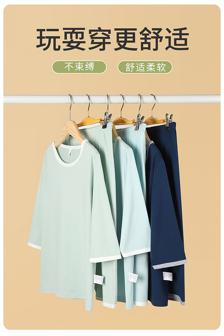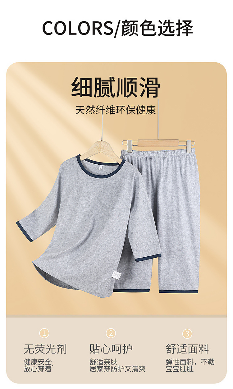 어린이 순면 파자마 여름 소년 소녀를위한 얇은 반팔 풀오버 솔리드 컬러 코튼 홈 의류 세트 외부 착용스토어 가기