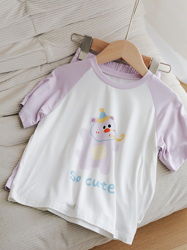 2025 어린이 Youkosi 홈 의류 세트 만화 넝마 짧은 소매 자른 바지 소년 소녀를위한 항균 파자마