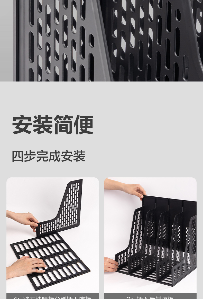 델리 9844BES 4단 파일박스 수납함 플라스틱 파일랙 책장 블랙 심플 수직 책장스토어 가기