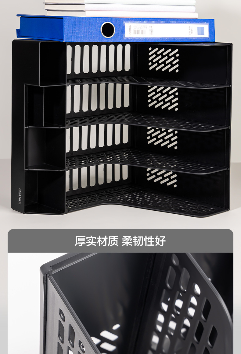 델리 9844BES 4단 파일박스 수납함 플라스틱 파일랙 책장 블랙 심플 수직 책장