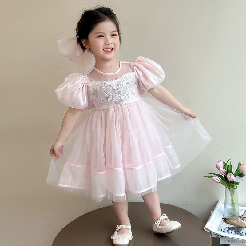 여자 여름 드레스 어린이 퍼프 스커트 2025 새로운 유행 아기 소녀 선물 드레스 공주 드레스스토어 가기