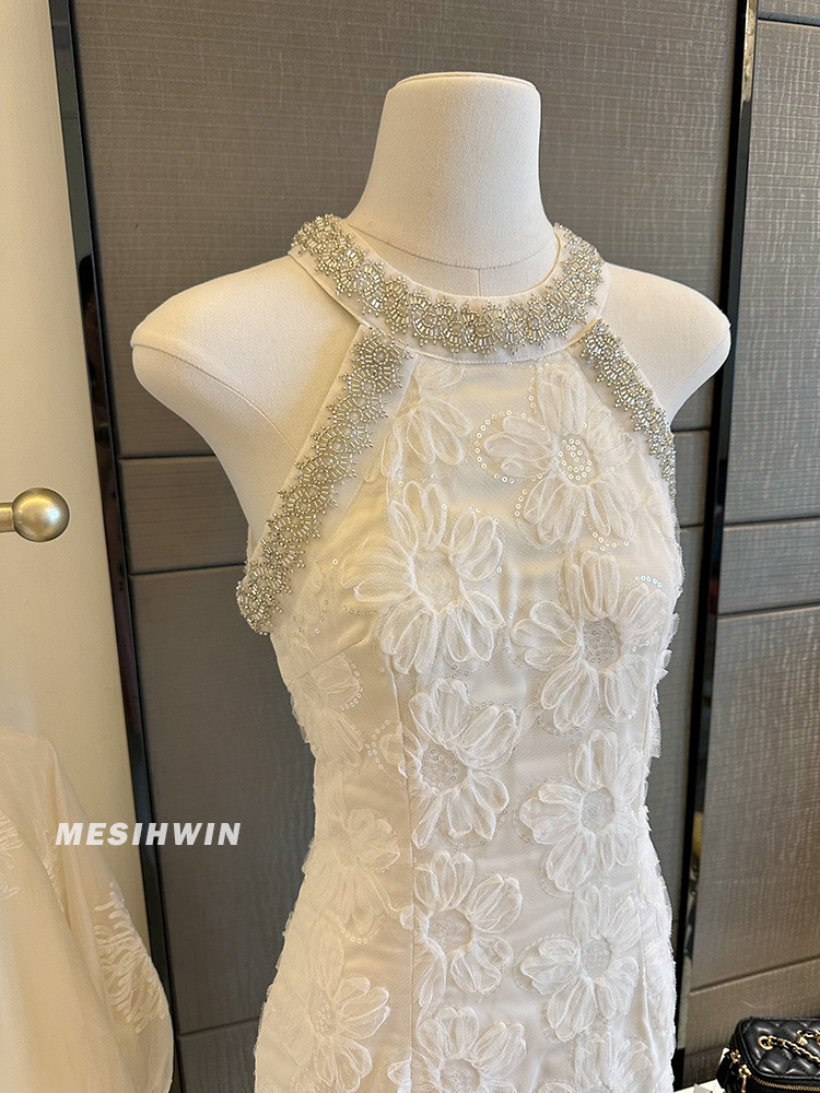 건진 노블 중공업 구슬 매달려 목 입체 꽃 원피스 여성 여름 우아한 하이 엔드 개선 청삼 치마