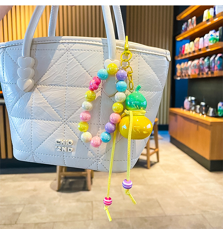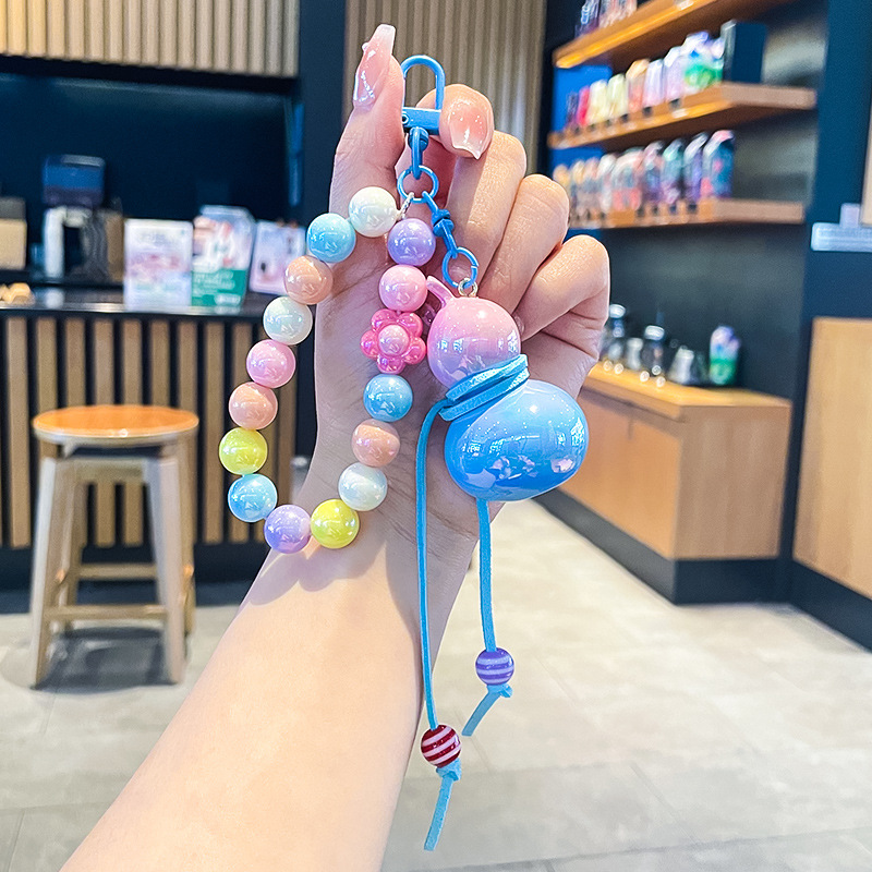 새로운 다채로운 조롱박 휴대 전화 체인 펜던트 백 펜던트 짧은 손목 구슬 문자열 휴대 전화 끈 여자 친구 선물