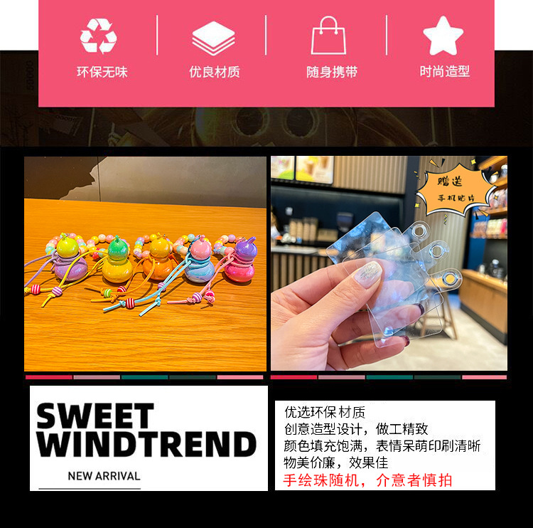 새로운 다채로운 조롱박 휴대 전화 체인 펜던트 백 펜던트 짧은 손목 구슬 문자열 휴대 전화 끈 여자 친구 선물스토어 가기