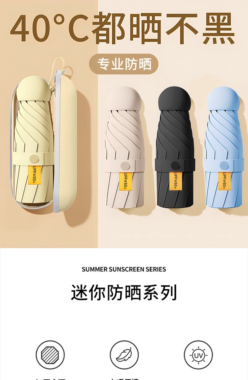 비와 햇빛 모두에 사용 가능한 소형 여성용 자외선 차단 우산, 맞춤형 캡슐 우산, 초경량 우산, 자외선 차단 태양 우산 도매스토어 가기