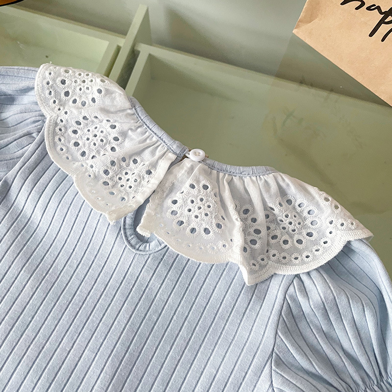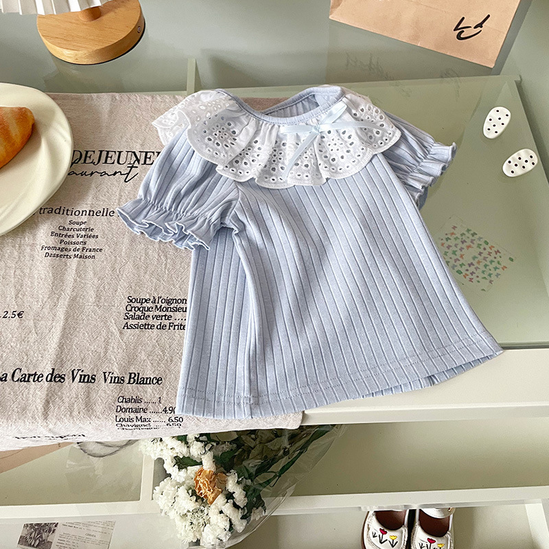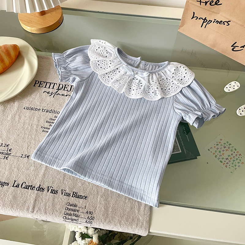 [재고] 여자 세트 2025 여름 새 한국 레이스 옷깃 탑 사랑 느슨한 캐주얼 레이스스토어 가기