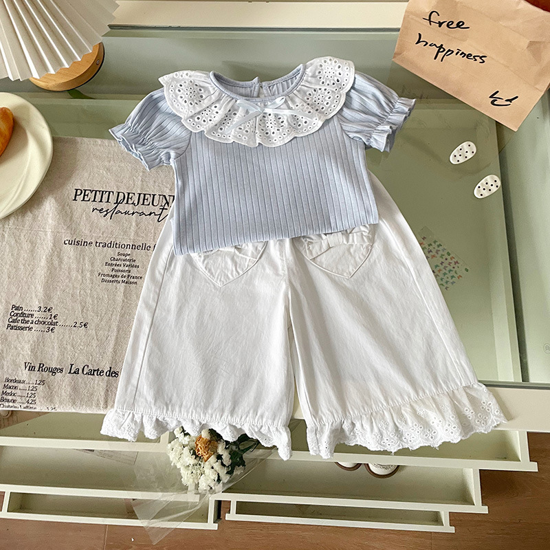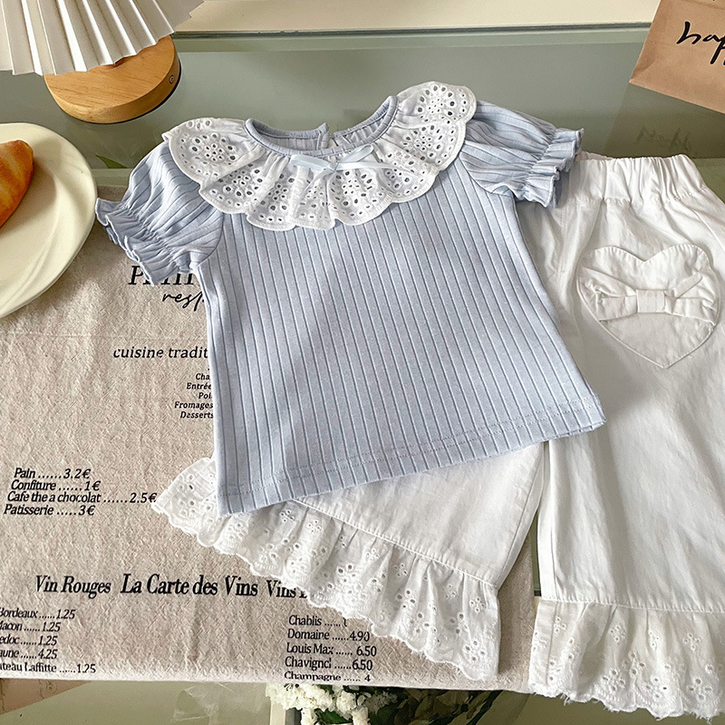 [재고] 여자 세트 2025 여름 새 한국 레이스 옷깃 탑 사랑 느슨한 캐주얼 레이스