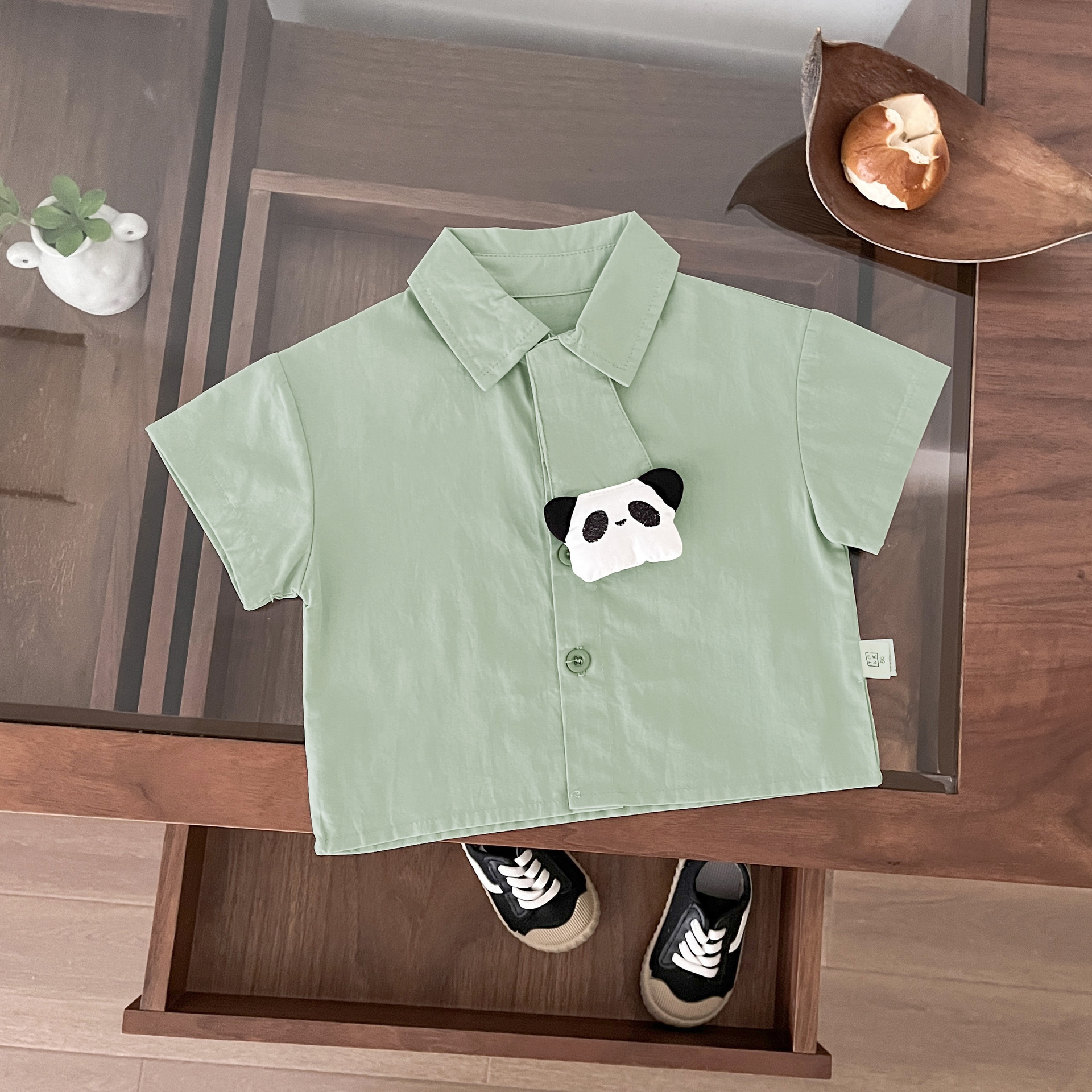 남자들의 여름 얇은 슈퍼 귀여운 팬더 나비 넥타이 셔츠 베이비 코튼 통기성 캐주얼 올 매치 핸섬 탑