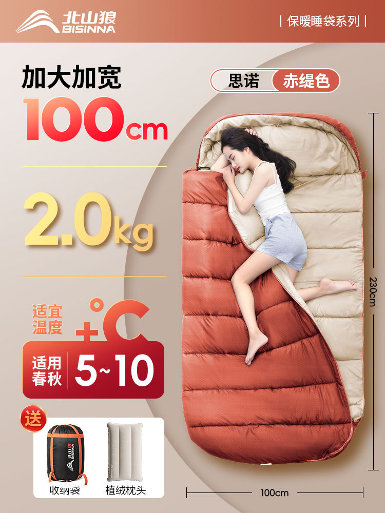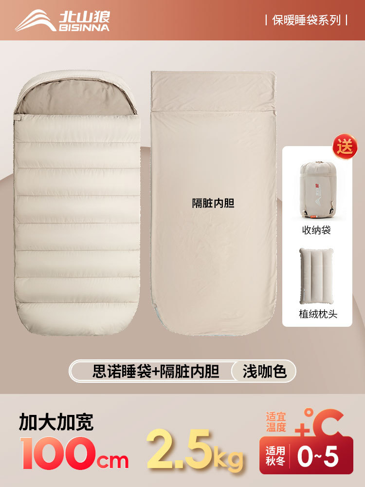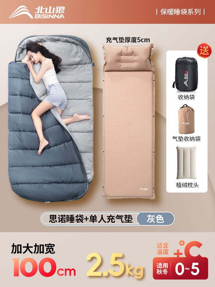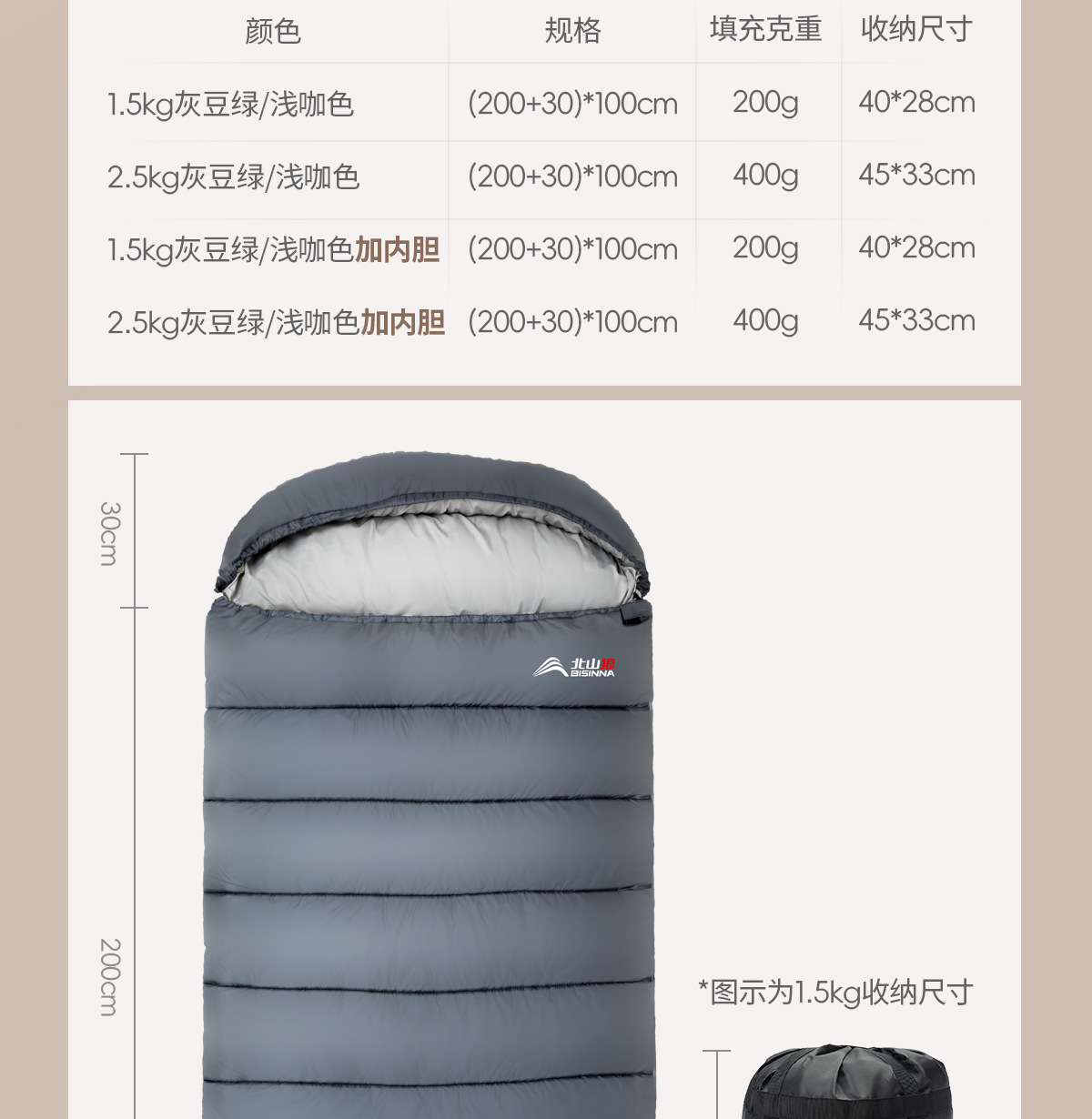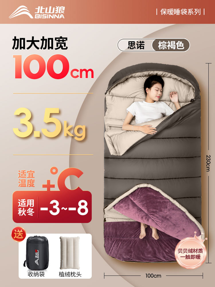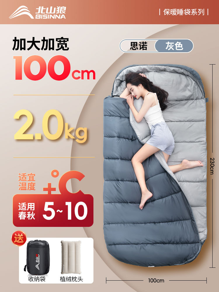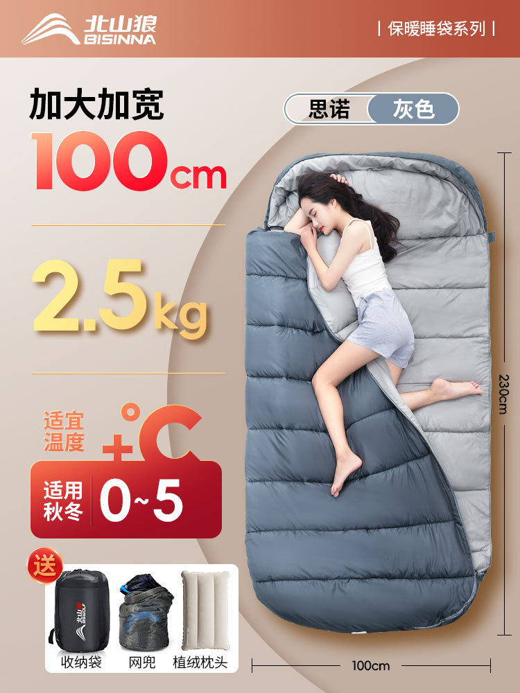 성인 야외 캠핑을 위한 Beishanlang 침낭 겨울 두꺼운 방한 사계절 점심 시간 이불 더블 자동차 사용스토어 가기