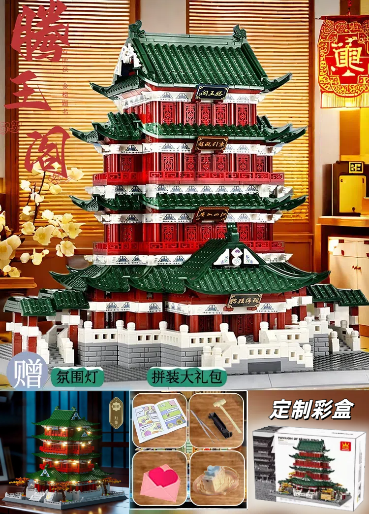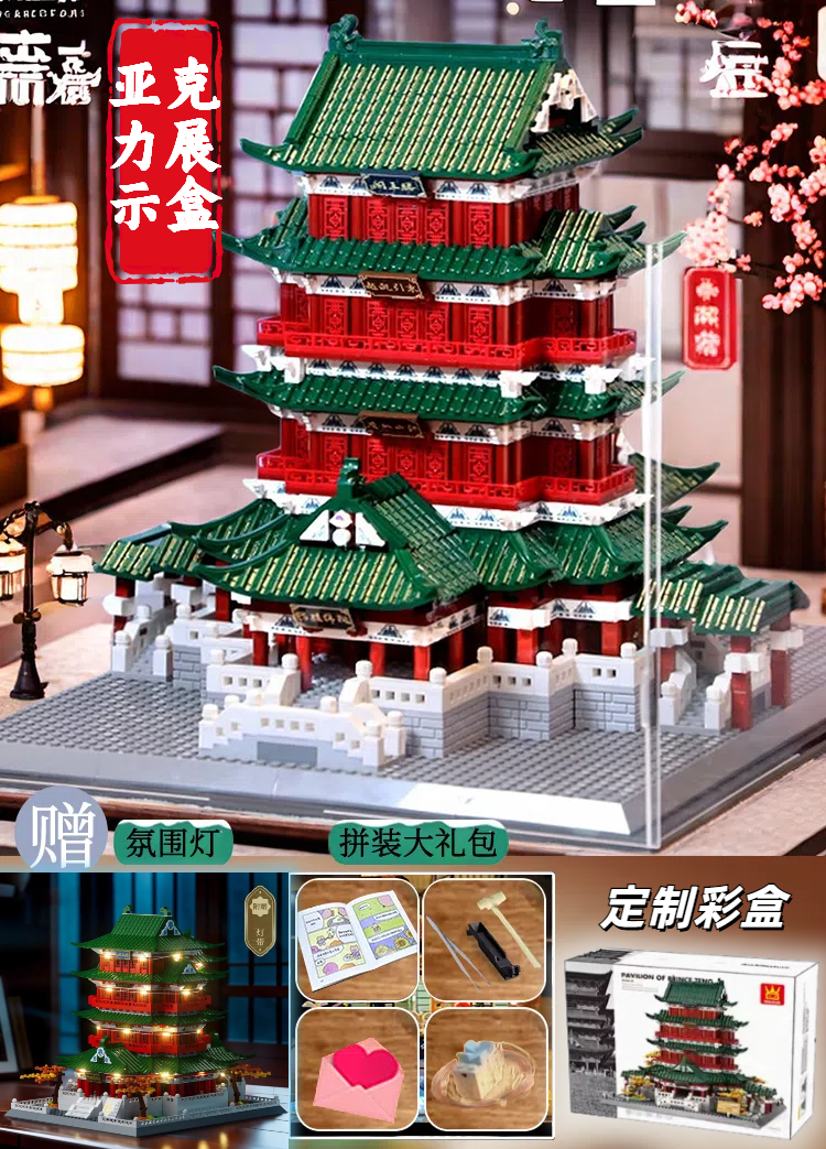• Tengwang Pavilion 62877 입자 + 아크릴 디스플레이 상자 + 무료 조명 9가지 큰 선물