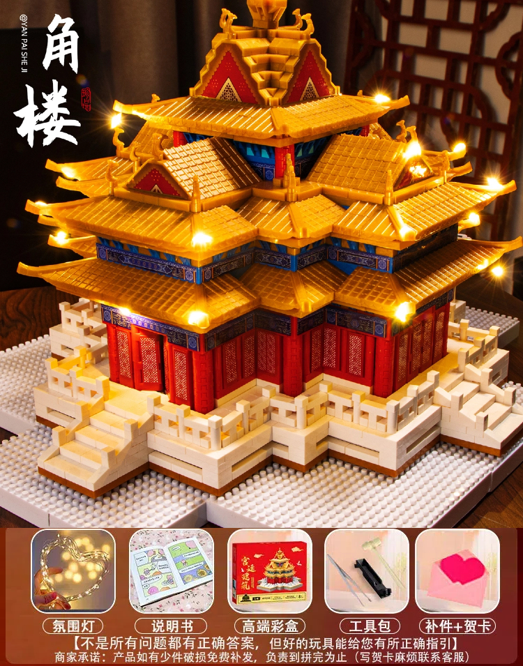 • [중국식 대형 건물] 자금성 삼합 1알 + 조명 + 9가지 대형 선물, 길이 약 1m