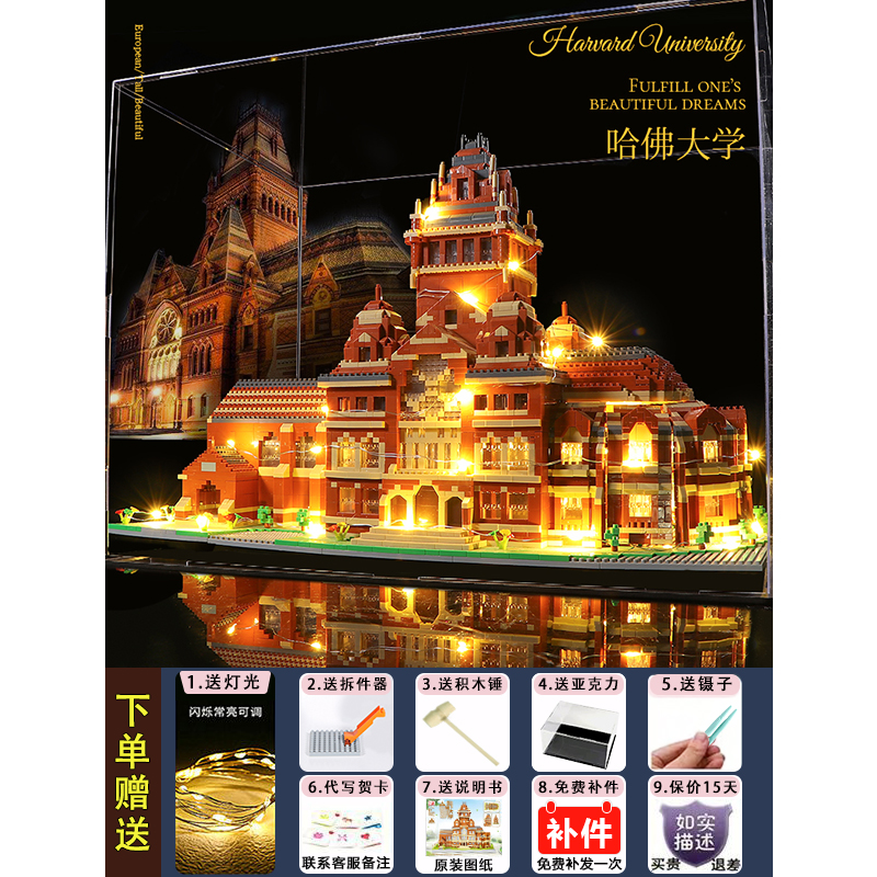 • 하버드 대학교 68877 입자 + 아크릴 디스플레이 상자 + 무료 조명 9가지 큰 선물