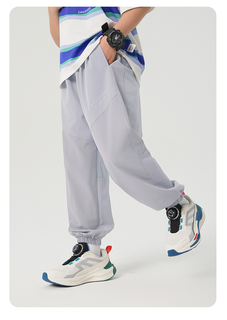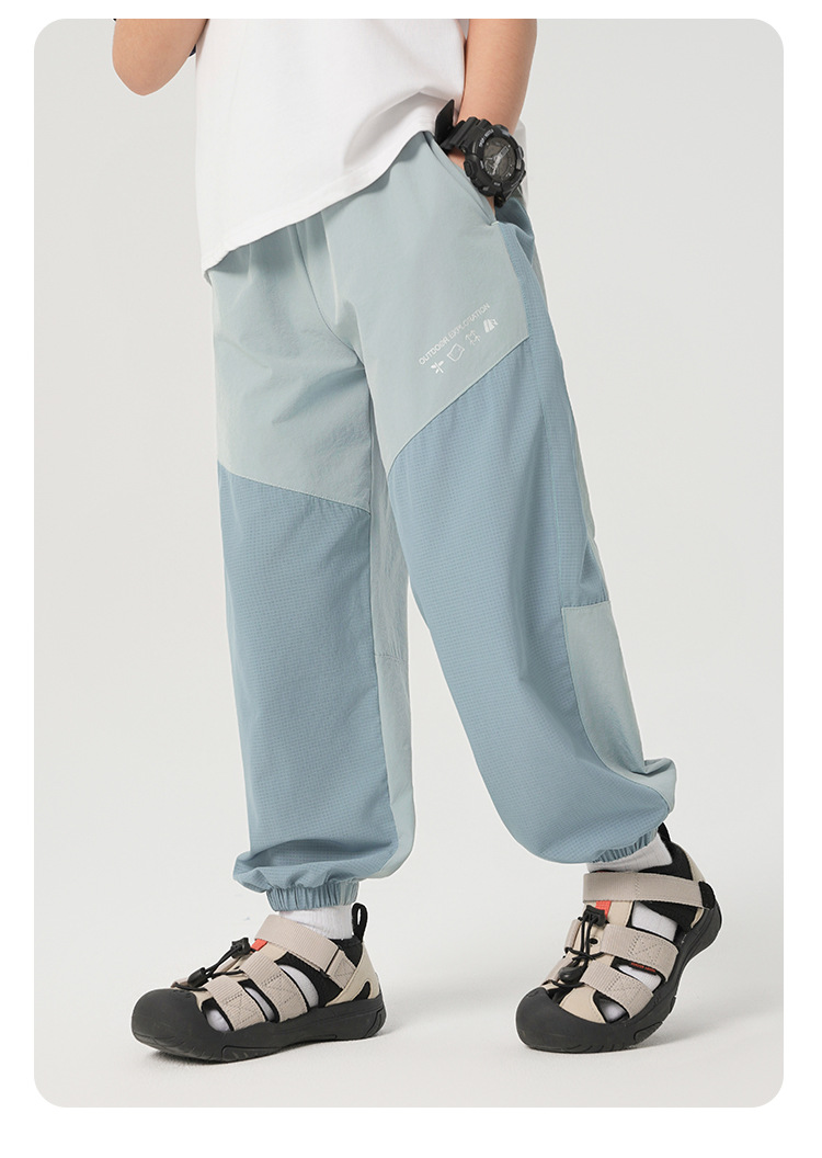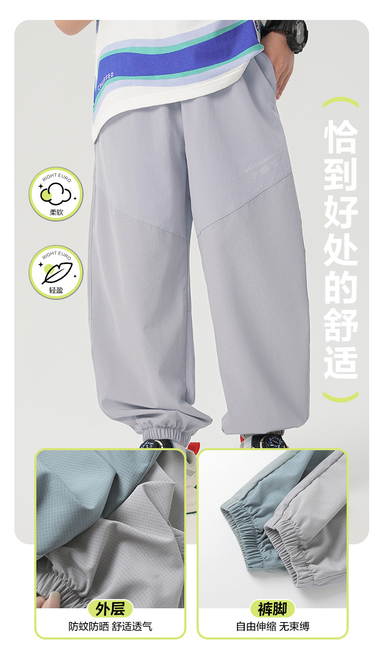 오른쪽 유럽 소년의 모기 방지 바지 여름 긴 바지 어린이 착용 어린이 큰 소년의 여름 얇은 에어컨 바지스토어 가기