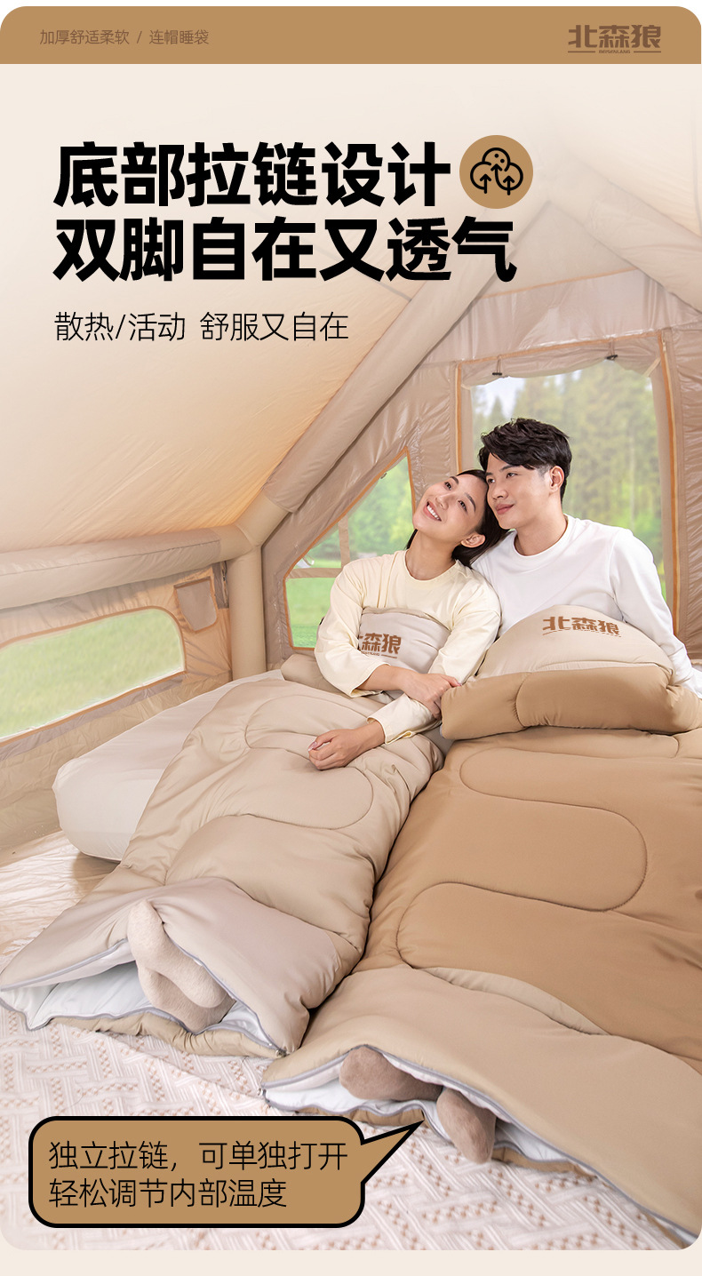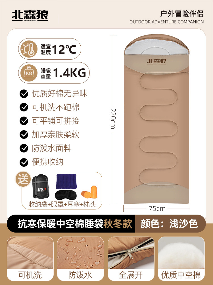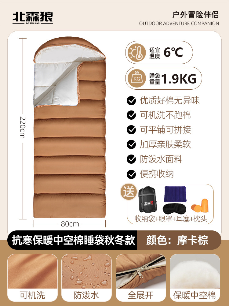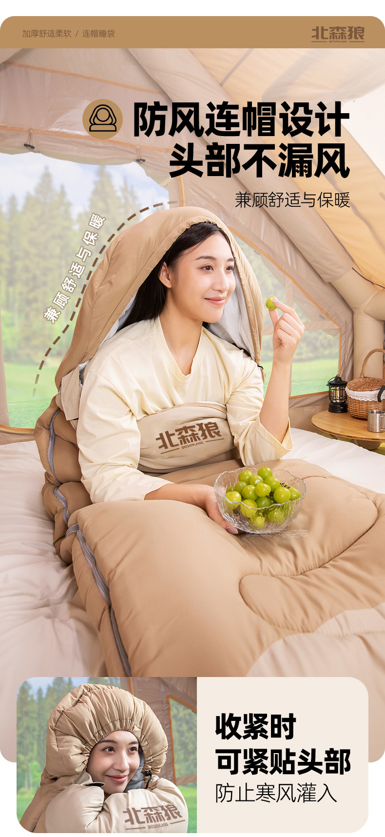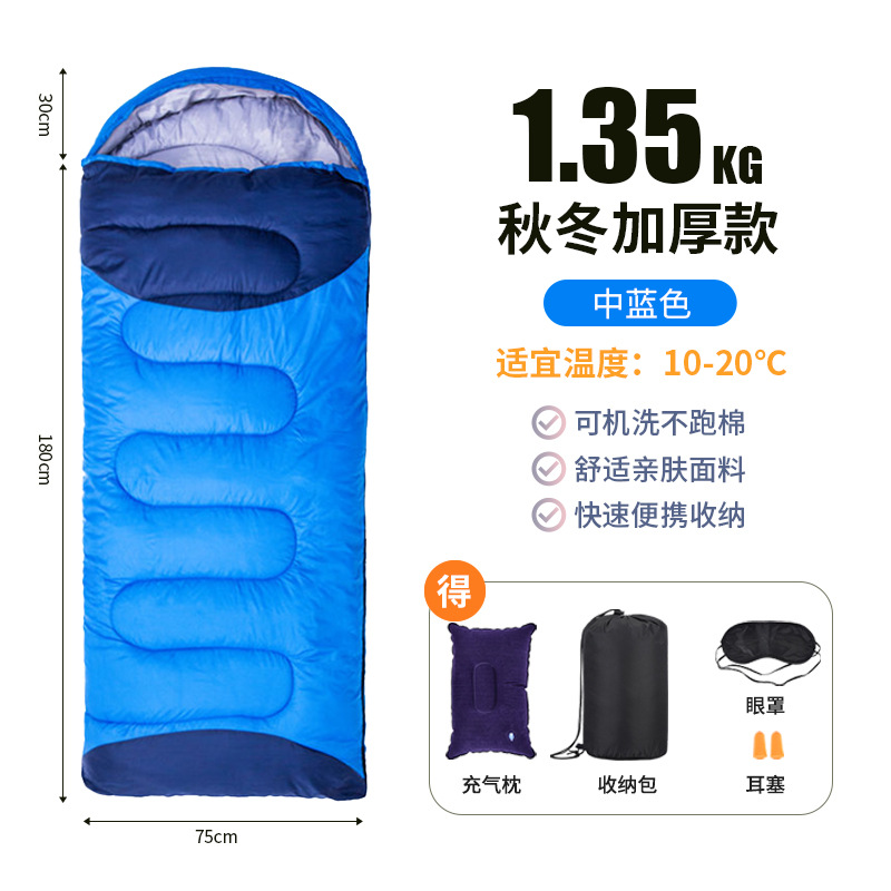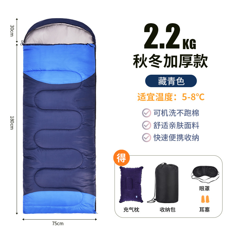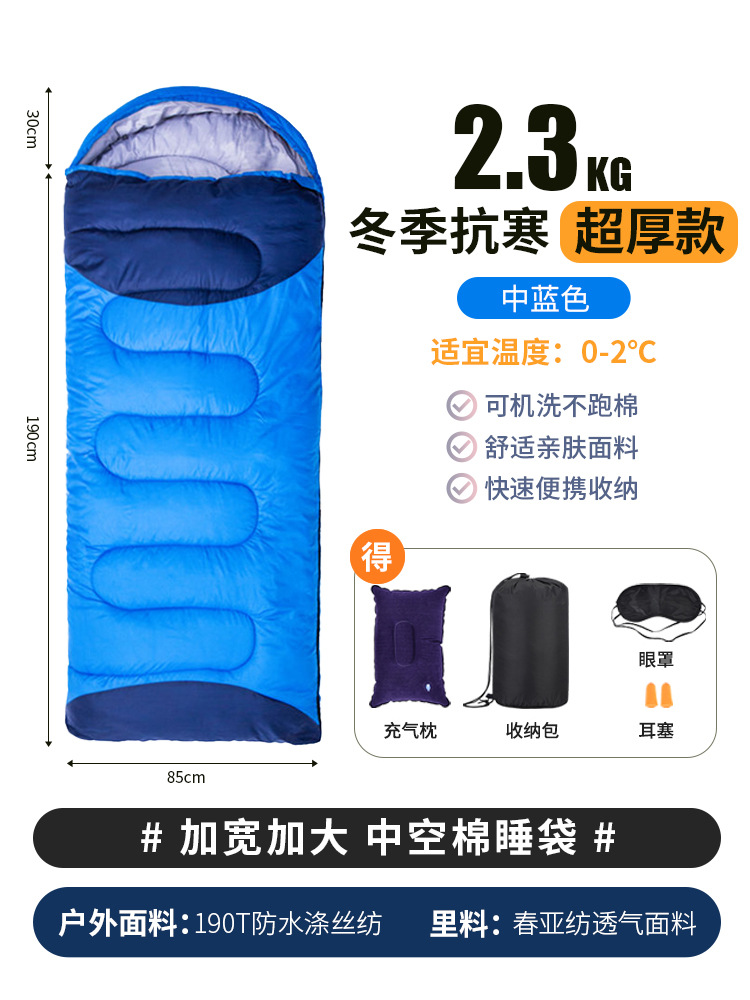 겨울철 성인용 침낭, 두꺼워진 방한 야외 캠핑 이불, 사계절 사무실 점심시간 자동차용 이중 목적, 싱글 및 더블스토어 가기