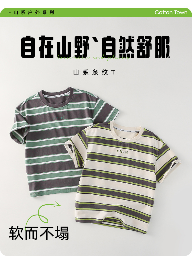 Mianhuatang Boys 반팔 티셔츠 베이비 탑 걸스 스트라이프 티셔츠 어린이 여름 착용 얇은 어린이 반팔 티셔츠스토어 가기