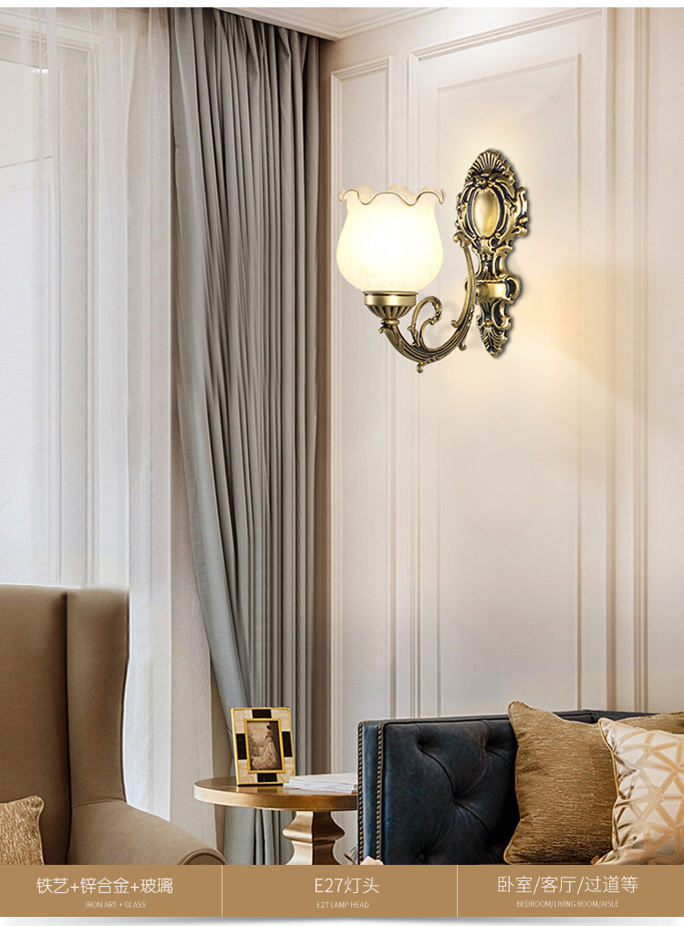 벽 램프 머리맡 램프 침실 단일 헤드 거실 TV 배경 벽 복도 벽 램프 통로 새로운 유럽 스타일 복고풍 장식