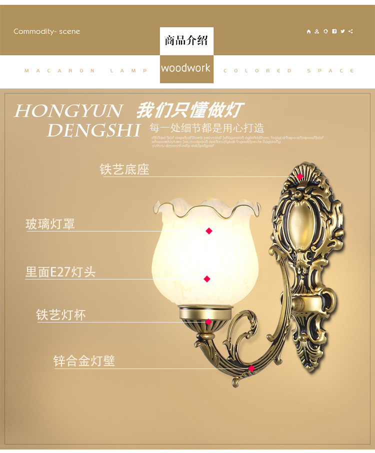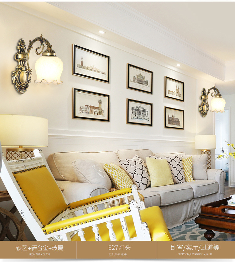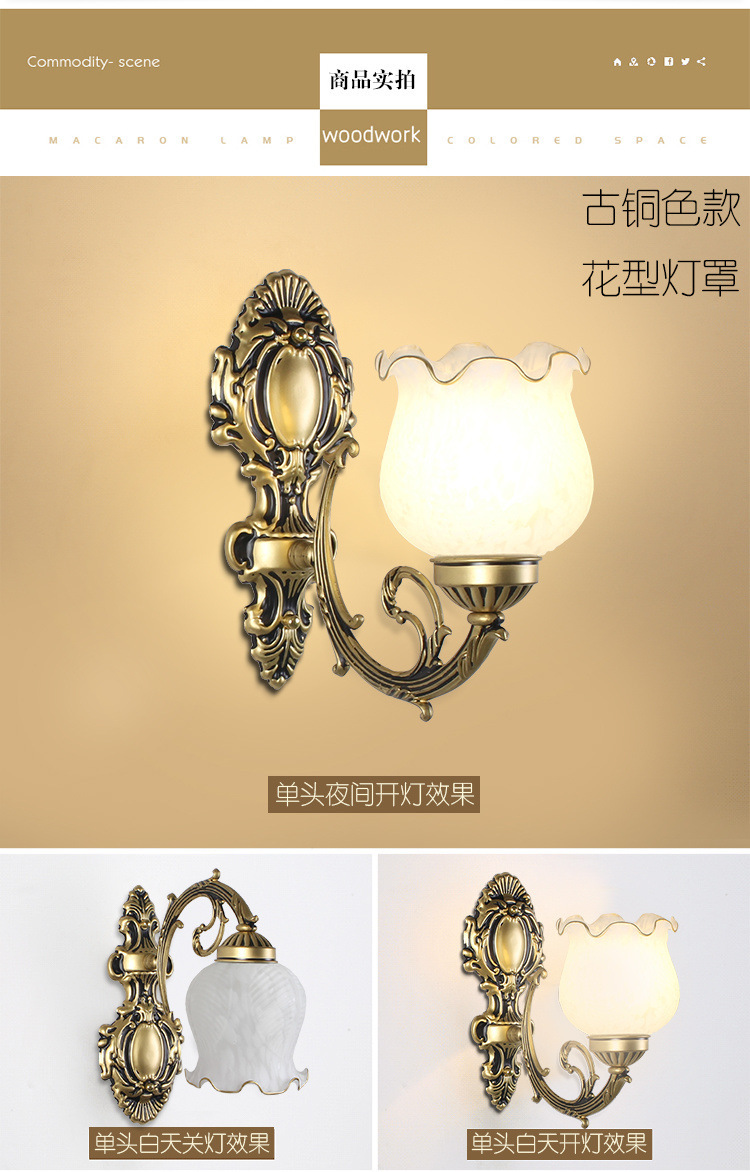 벽 램프 머리맡 램프 침실 단일 헤드 거실 TV 배경 벽 복도 벽 램프 통로 새로운 유럽 스타일 복고풍 장식스토어 가기