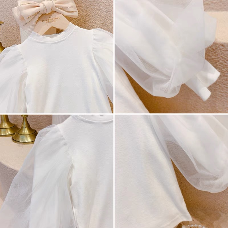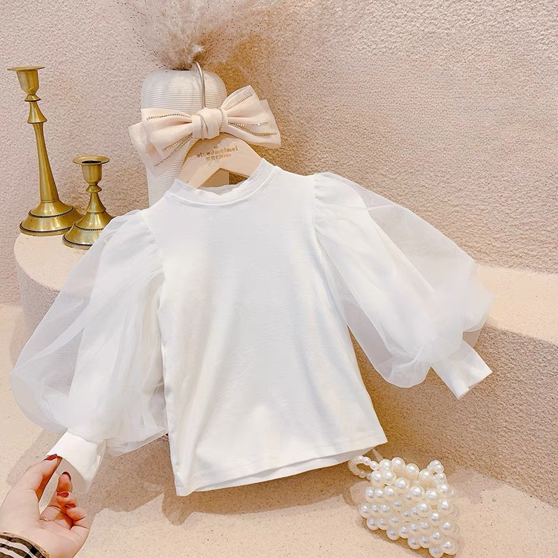 AINI 소녀 메쉬 공주 버블 슬리브 봄과 가을 보틀 셔츠 소녀의 2025 신상 한국 스타일 조수