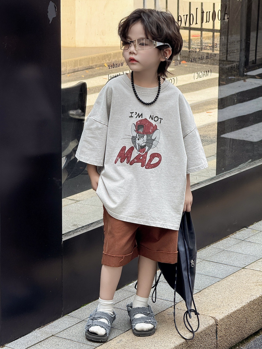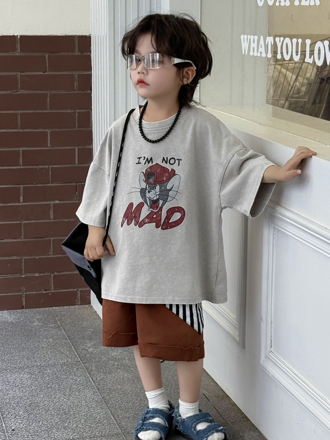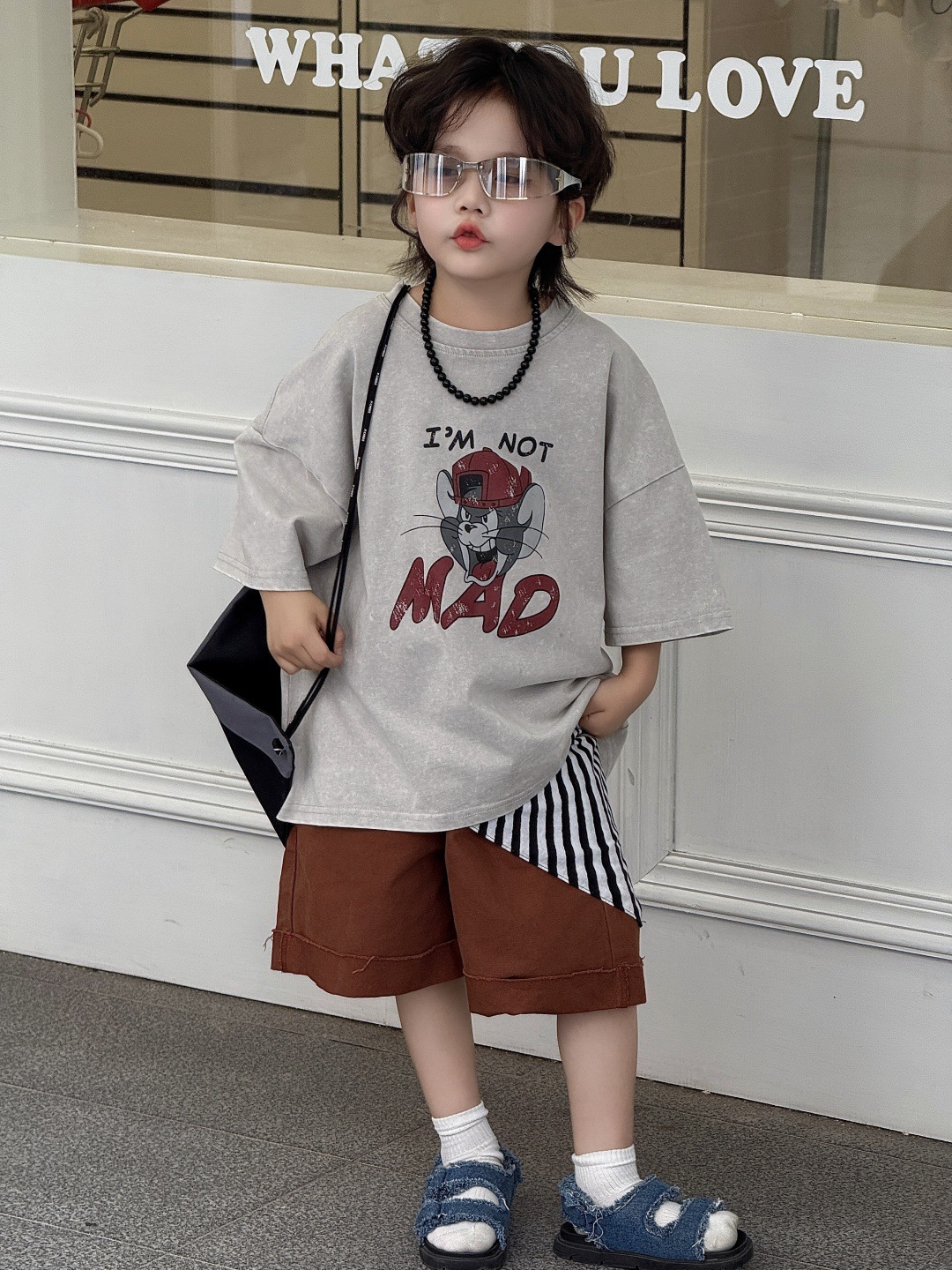아동복 아동용 티셔츠 느슨한 미국 만화 탑 반팔 반소매 소년 아기 드레스 프라이드 컬러 트렌디 쿨스토어 가기