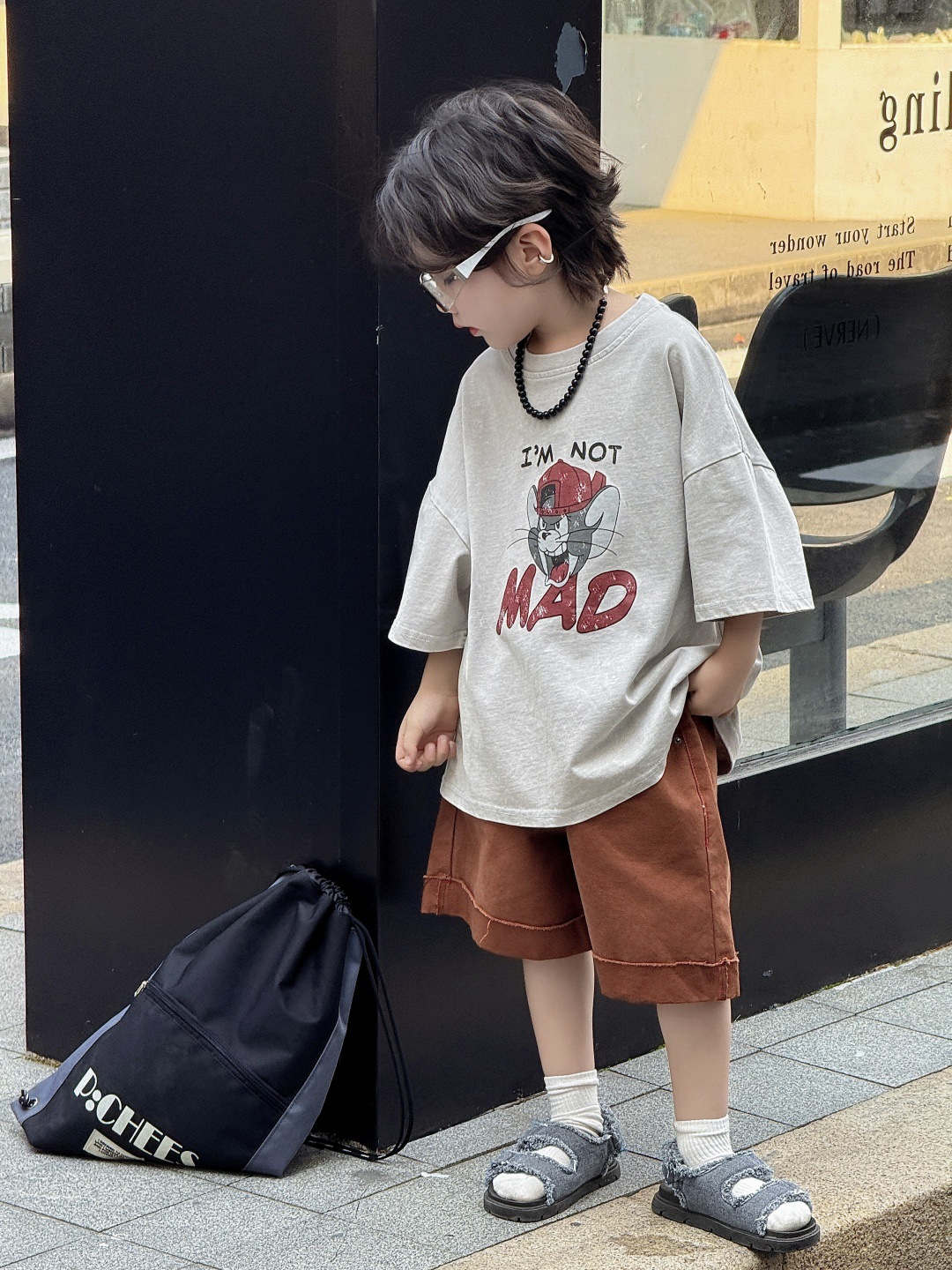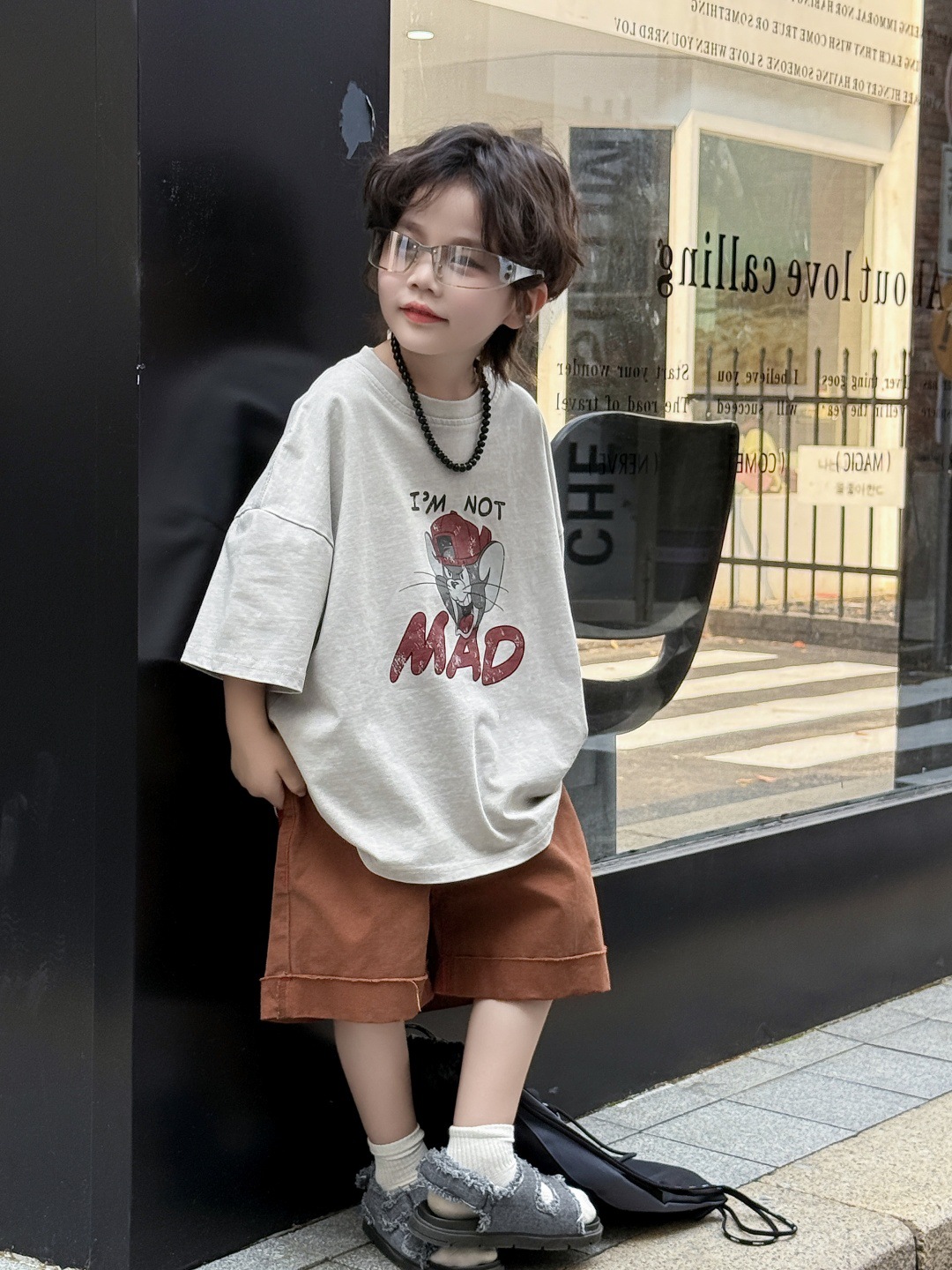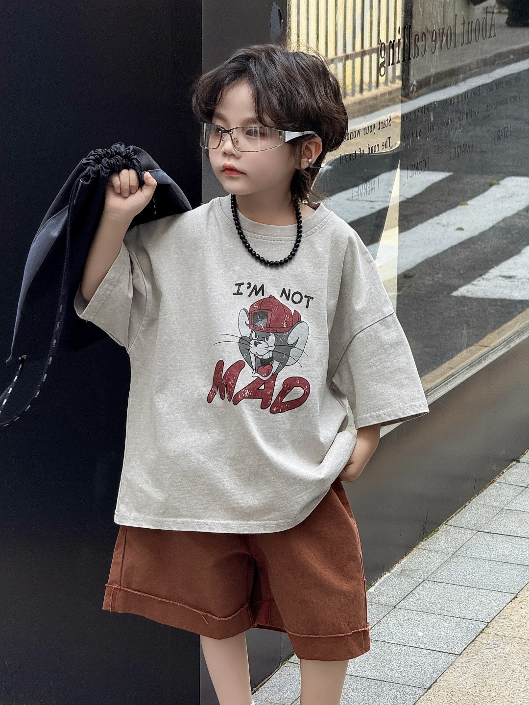 아동복 아동용 티셔츠 느슨한 미국 만화 탑 반팔 반소매 소년 아기 드레스 프라이드 컬러 트렌디 쿨스토어 가기