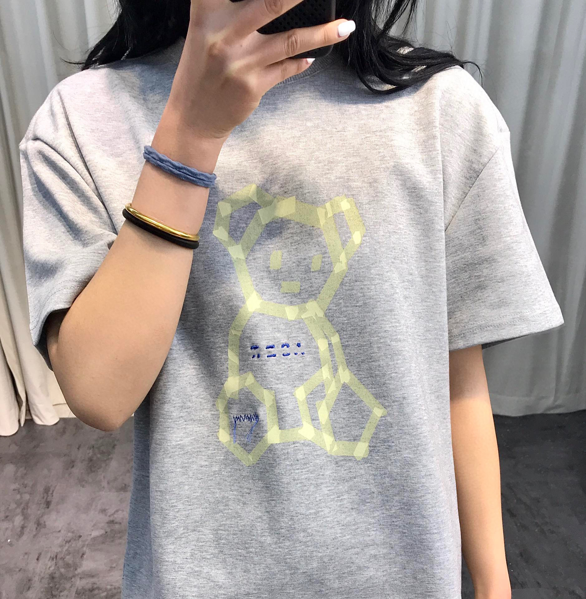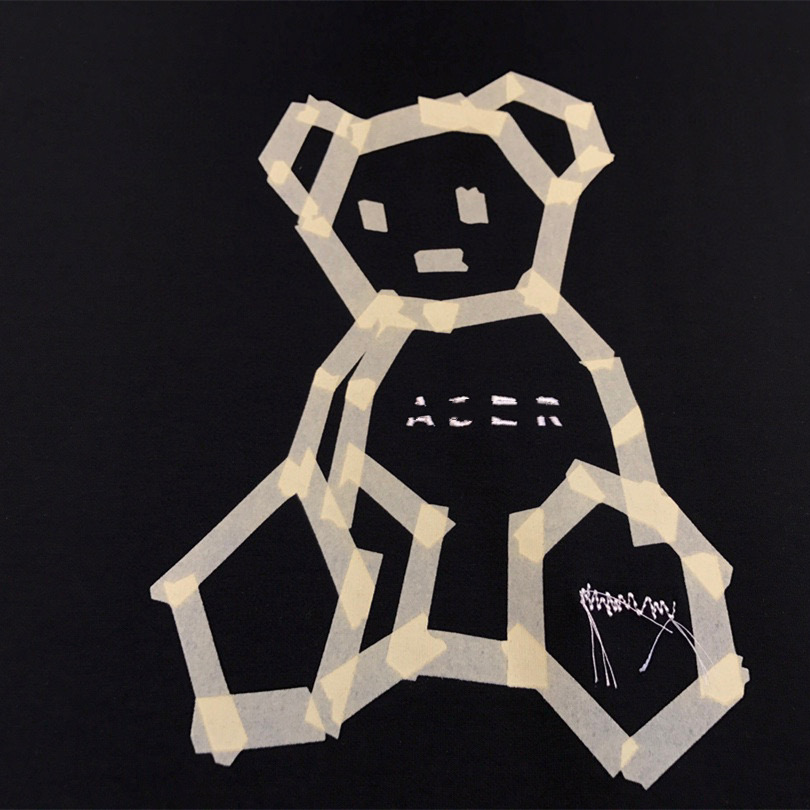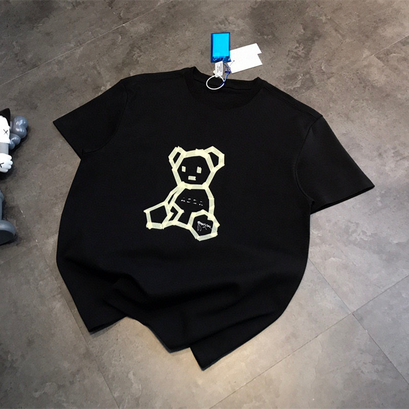 ADE 한국 트렌디 브랜드 베어 프린트 티셔츠 남녀공용, 루즈한 종이접기 윤곽선 자수 클래식 크로스보더 라이브 방송스토어 가기