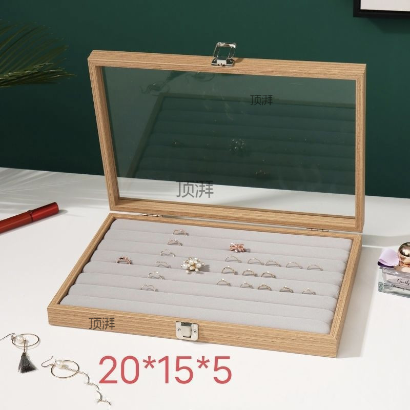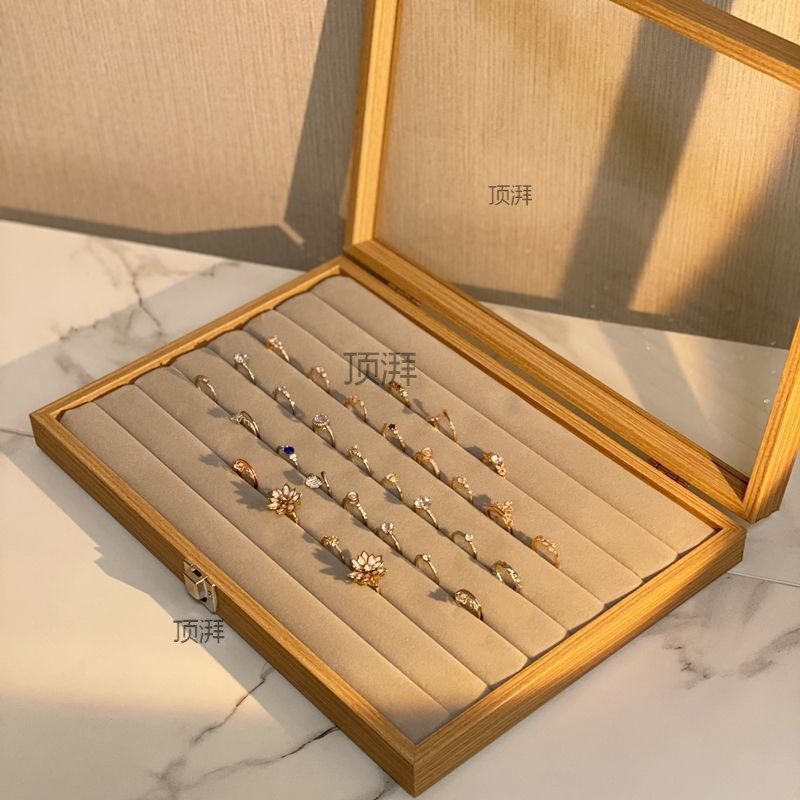 • 뚜껑이 있는 로즈우드 그레인 링 박스