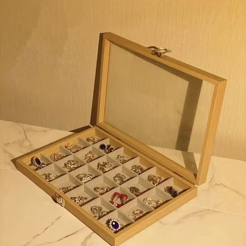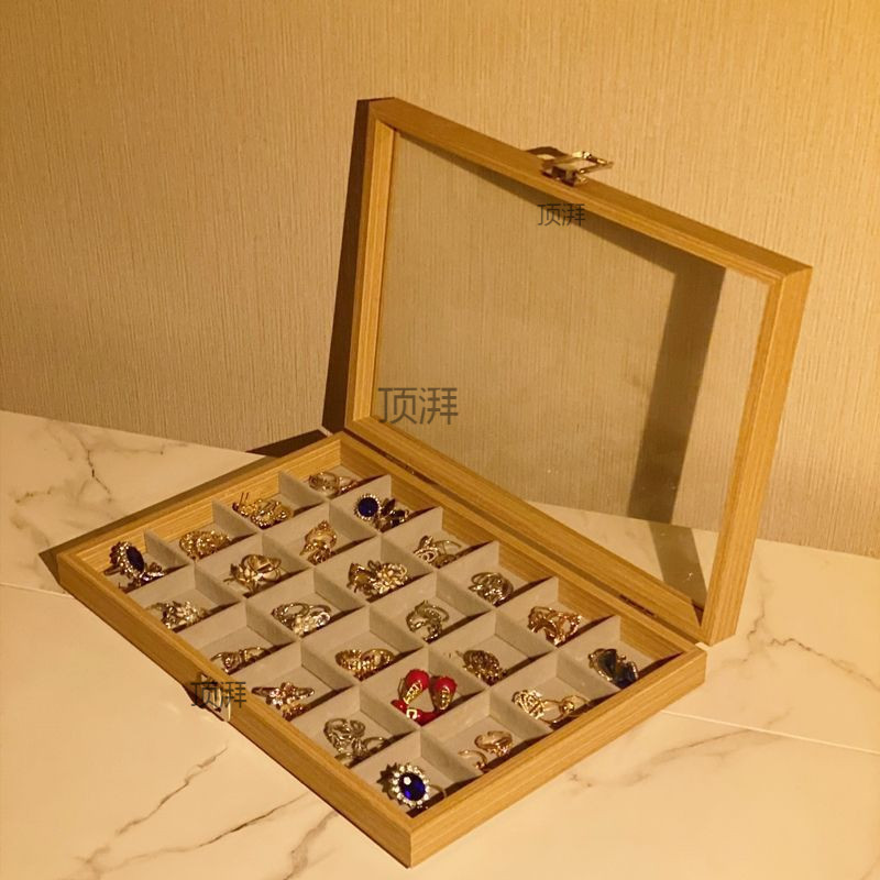 • 뚜껑이 있는 로즈우드 그레인 24칸 상자