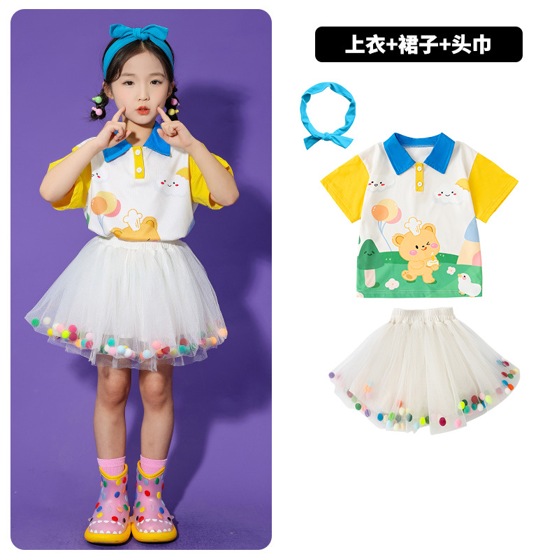 어린이 어린이 의상 새로운 유치원 만화 곰 푹신한 스커트 댄스 의상 소년 소녀