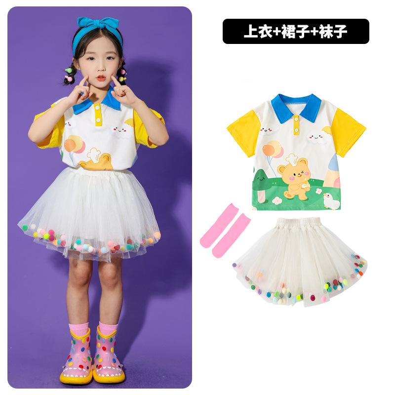 • 여아 정장 [곰 반팔 + 컬러풀 볼 거즈 스커트]