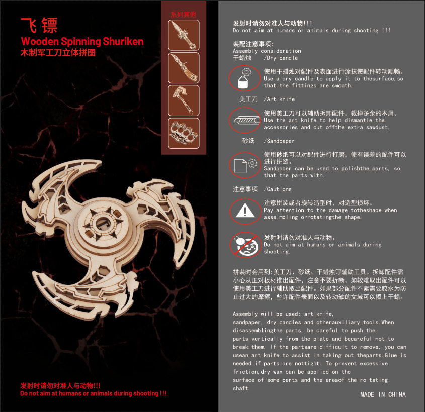 나비 칼 칼 칼 게임 같은 다트 너클 조립 장난감 3 차원 나무 퍼즐 압축 크리에이티브 타이거스토어 가기